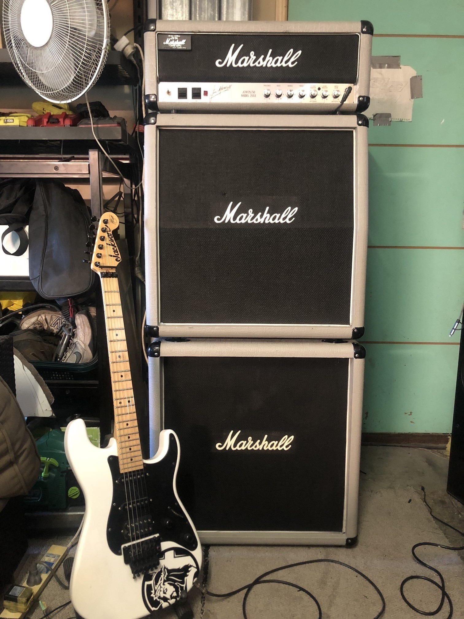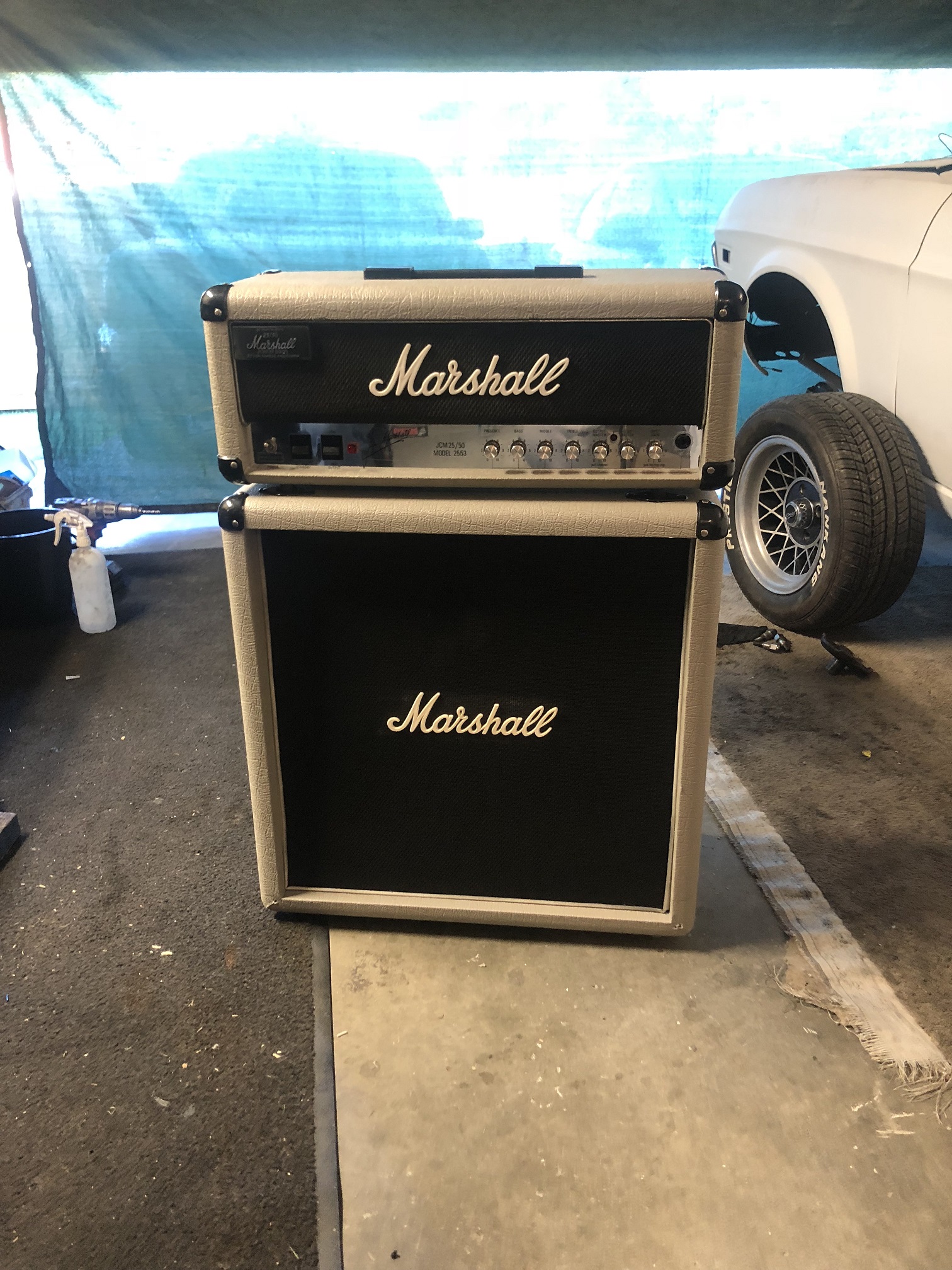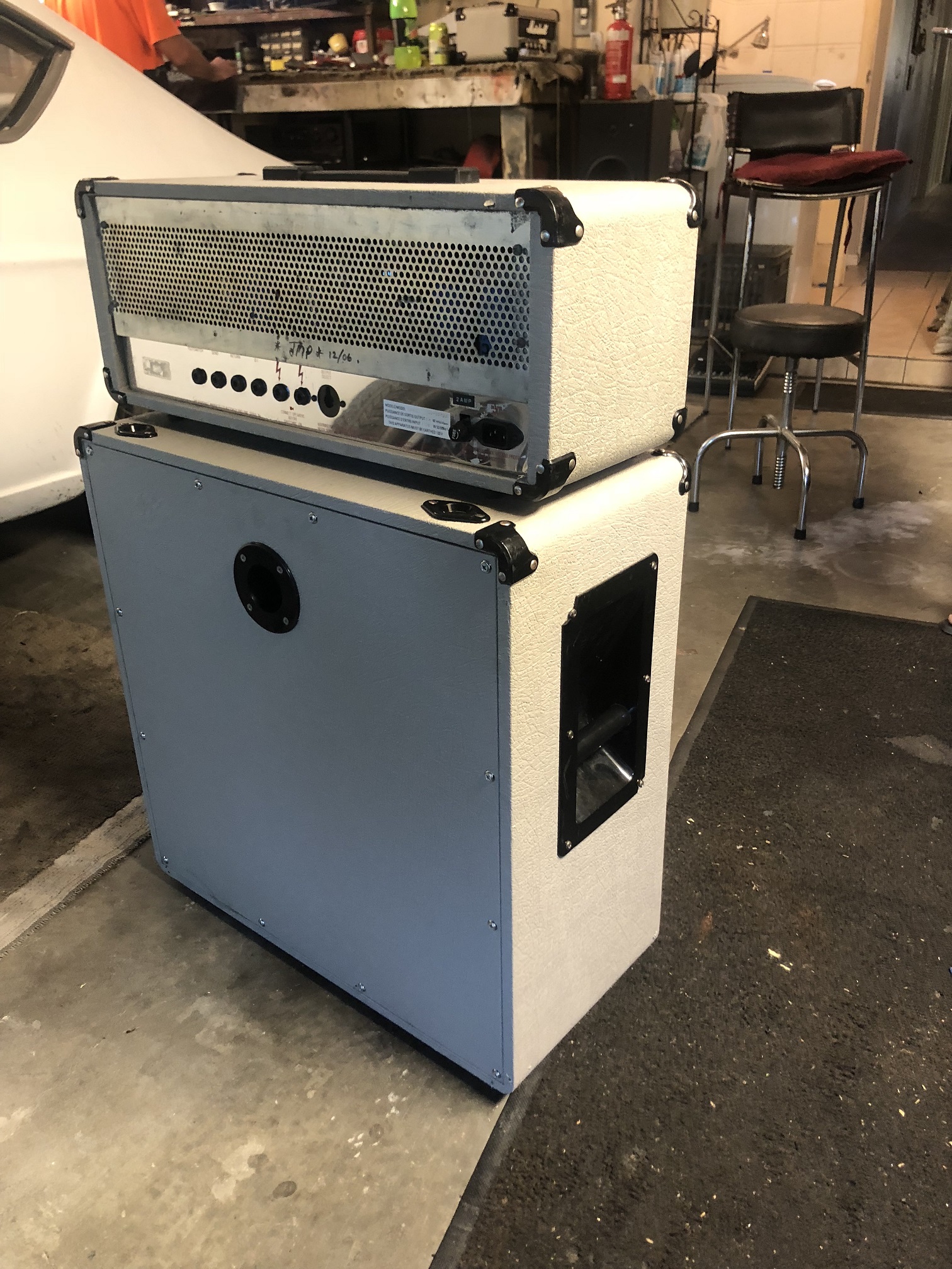 So Im wanting to buy the 2x12 bins for it but trying to find even one was near impossible,,so get them built or wait,,2 weeks and a 4x10 1965B cabinet was up for grabs,,500 thank you Ill have that,,Only thing it was black,,so do i recover it in the gray tolex thats hard to find,,no I opted for a colormatch and rolled on the jubilee color with a roller and seriously youd never notice,,couple weeks go by and boom theres a 2x12 1966A cab up for grabs,,nother 500 and thank you now the proud owner of a full stack,,And I gotta say with the 4x10 and 2x12 combination it sounds amazing,,pics to follow,,For those of you wanting to go with this color match heres the code and its an exact match