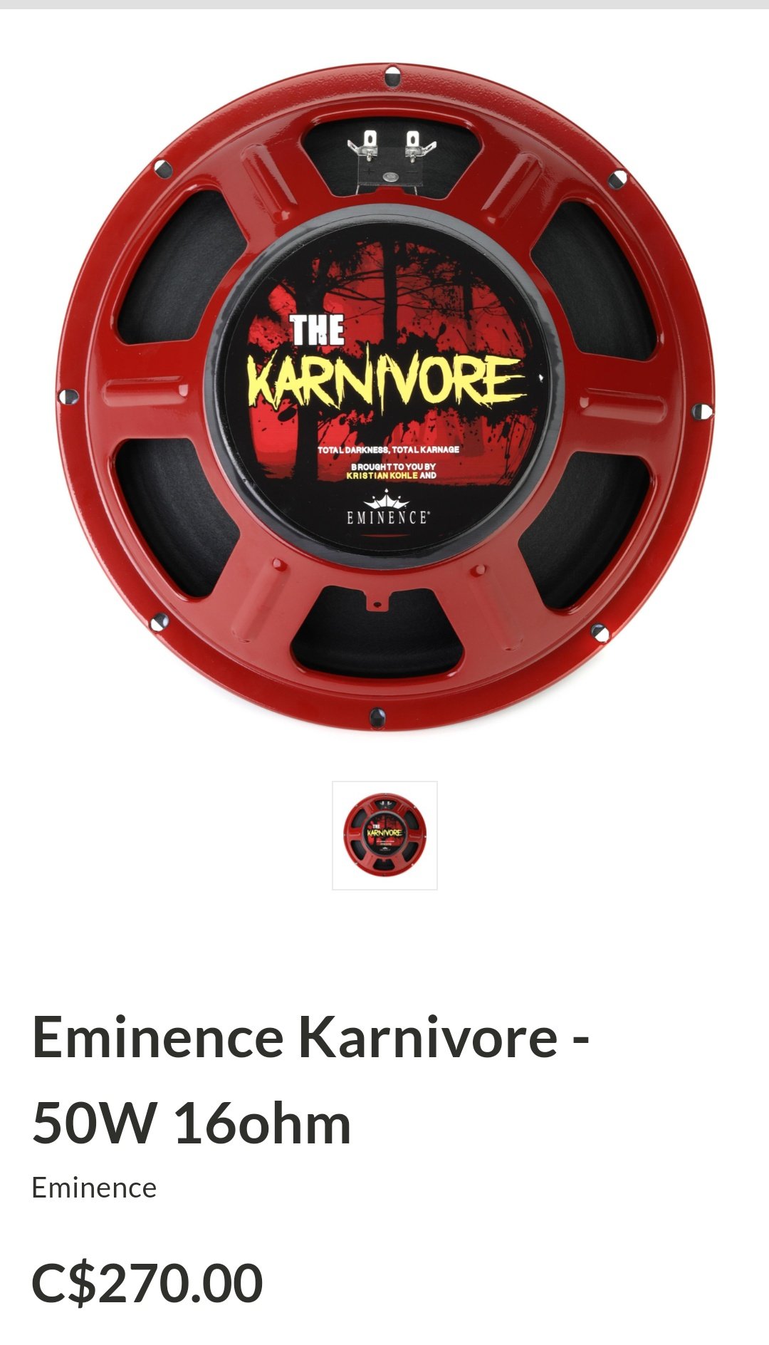 I like how balanced the karnivore is but you know it's not going to cut through a live mix as well as most celestions do, if that's a concern for you??