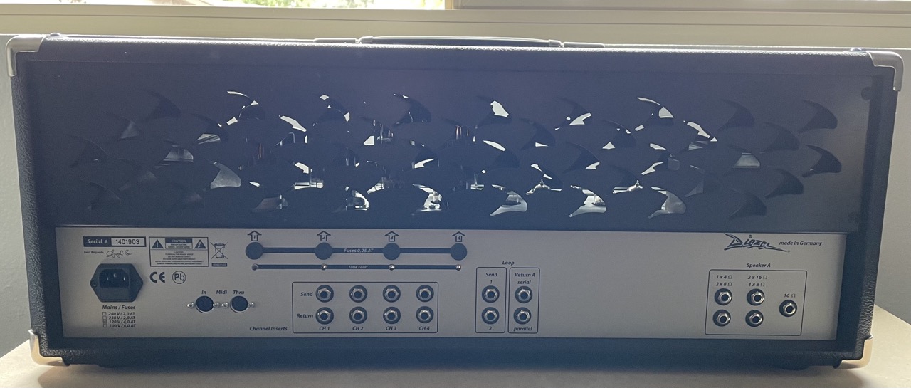 Excellent condition Diezel VH4 made in 2022. Has JJ 6L6 power tubes installed (which sound better than KT77 in this amp to my ear). Comes with power cable and original box.