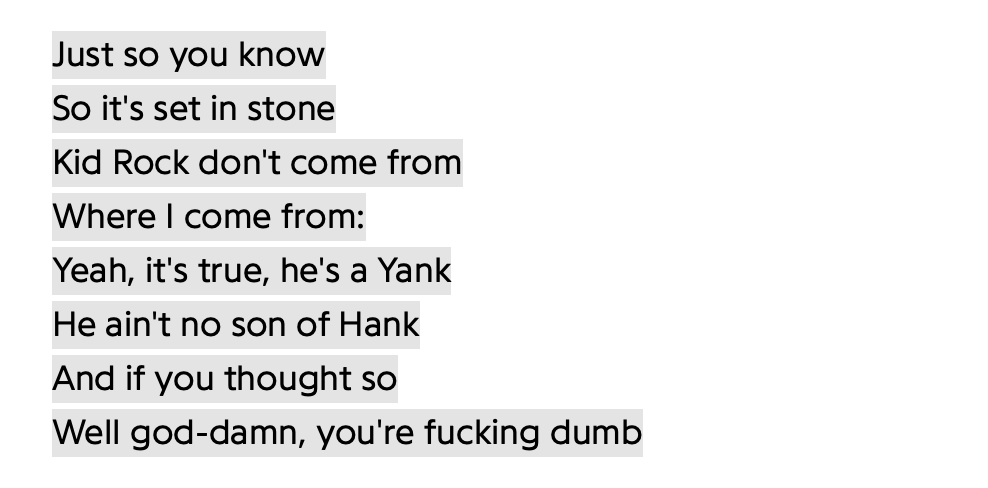 Hang on Ray... what's wrong with Winger?I put Kid Rock into the Winger - Creed - Nickleback - 5FDP bin