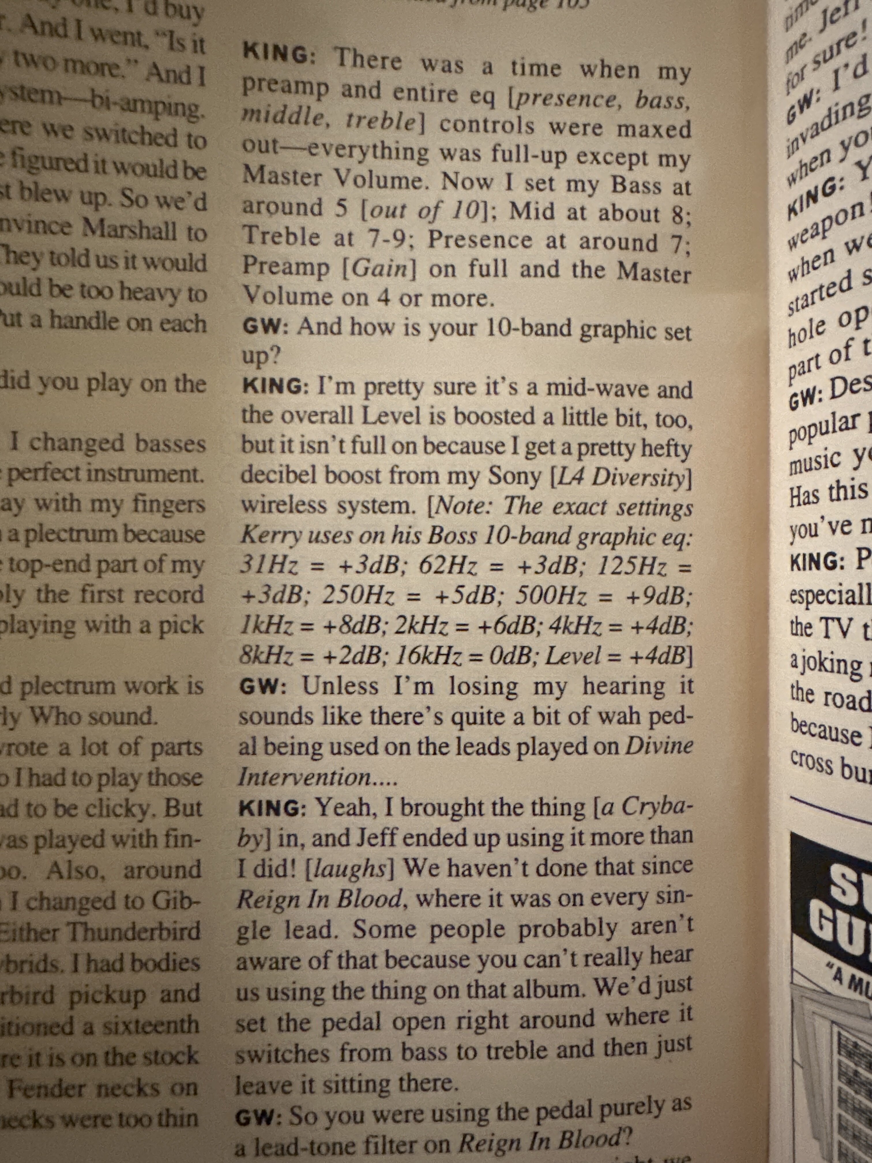 I have always wondered exactly when they switched to EMGs. Was it on RIB, or SOH? I always thought that had an effect on their tone, since the boosted JCM800s were pretty much their staple.