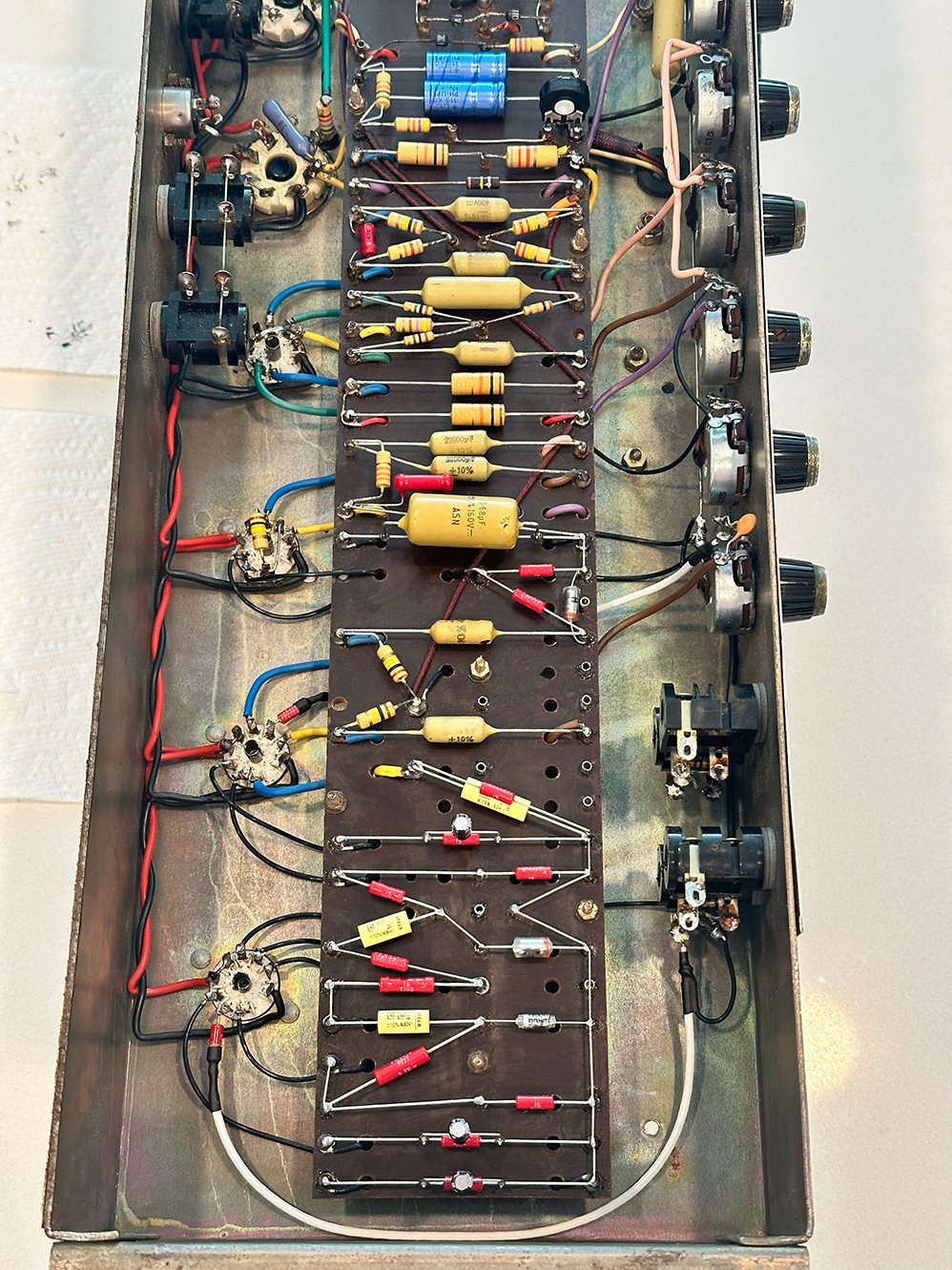 Mostly done! Just doing some voicing changes here and there for myself because I lean more toward angrier tunes haha. Trying to decide on depth cap and treble cap values. Then I might play around with different voltages and filtering. But she's sounding mean! Quite tight and thumpy with the new filter caps and grounding.
