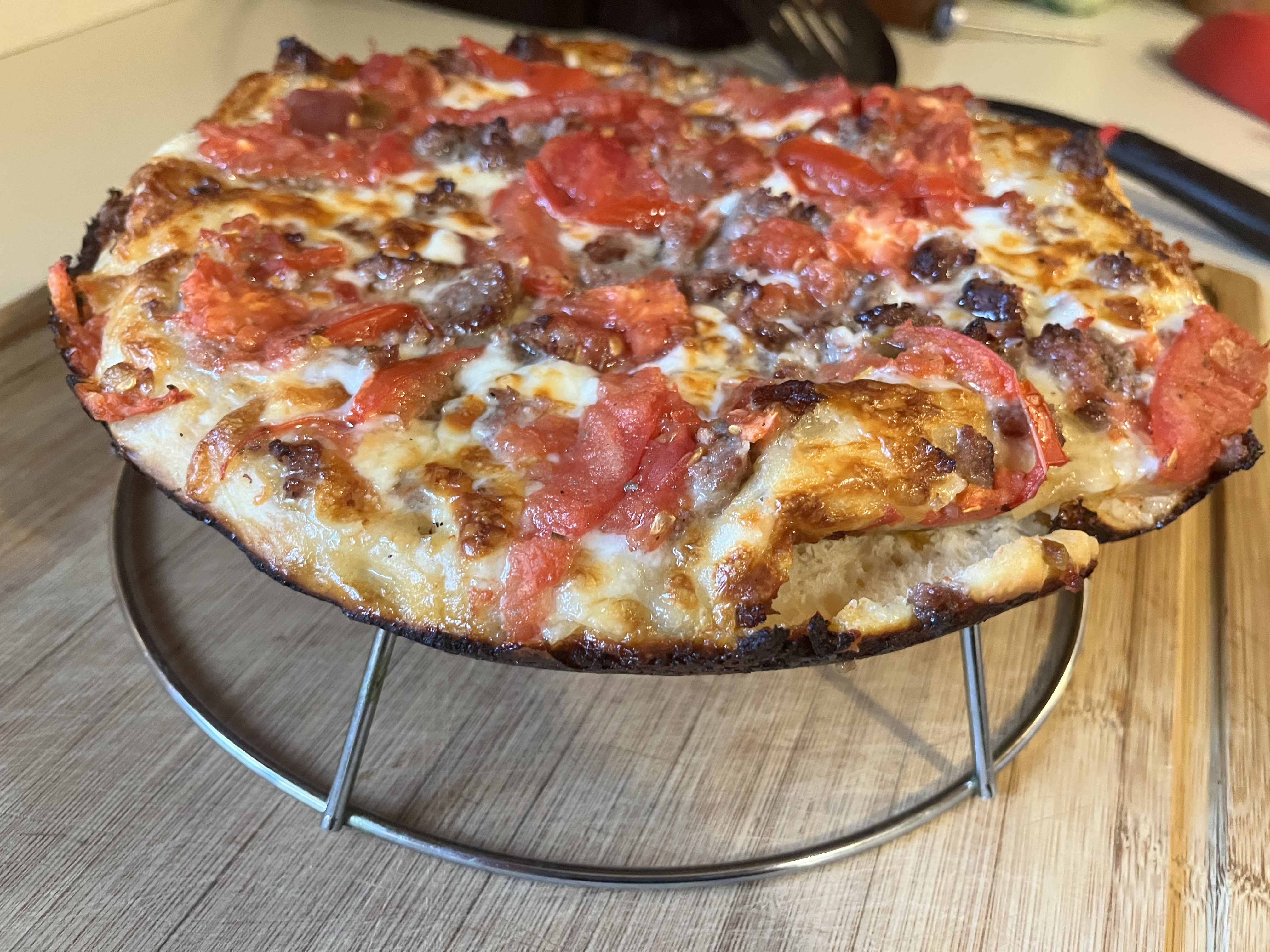 If you have a wooden board or a skillet for example make sure to put the pizza on the wooden board or skillet before topping. If you slide with a metal peel, use a bit more flour than usual so it's not tacky and sticky to slide on or if it's too hard also put on the peel before topping.
