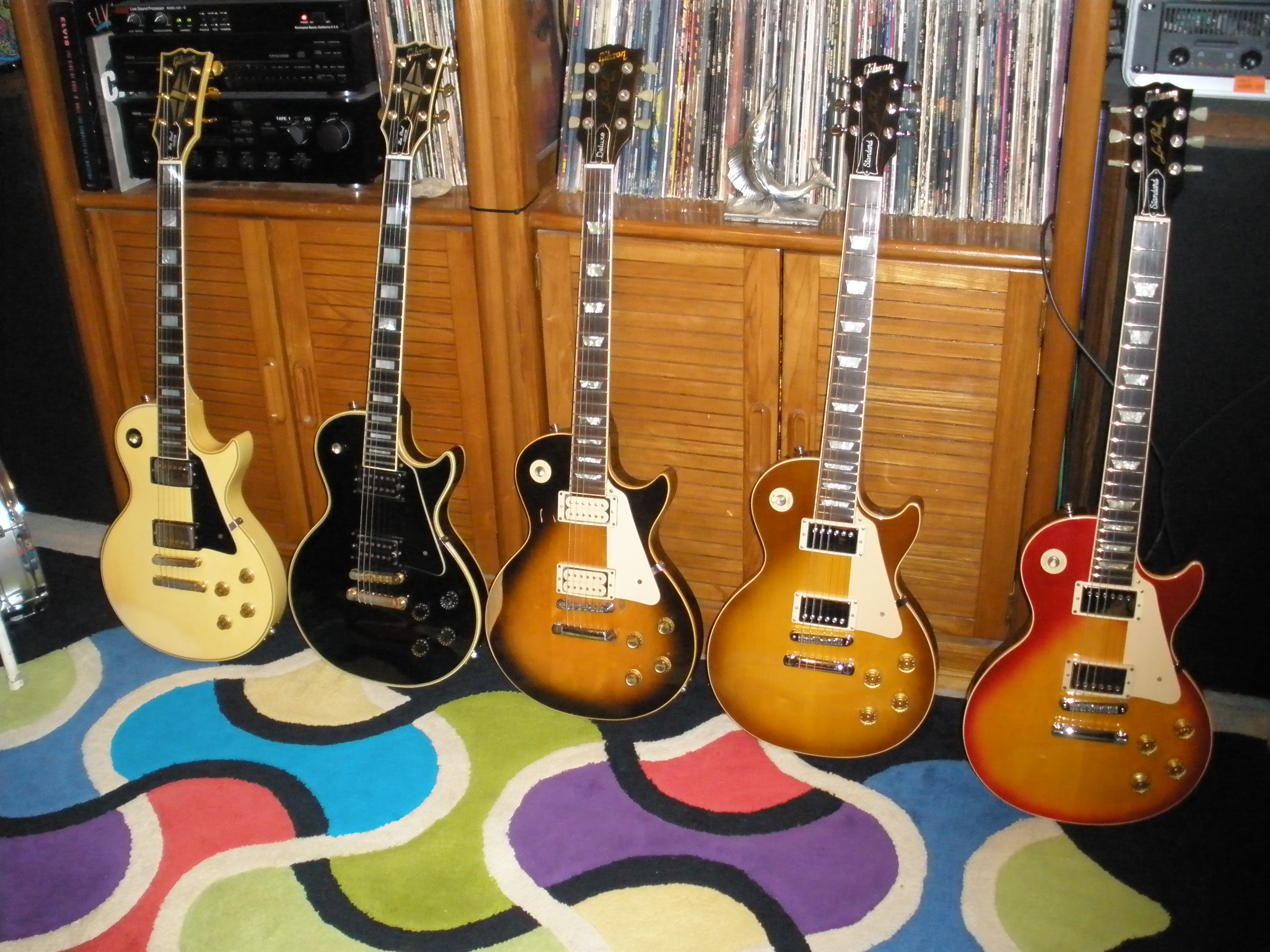 What pups are in ya Gibsons? Mine came used with antiquity neck and antiquity JB at bridge... !! Its a good old school trash metal to sweet thick G&R tones at neck..