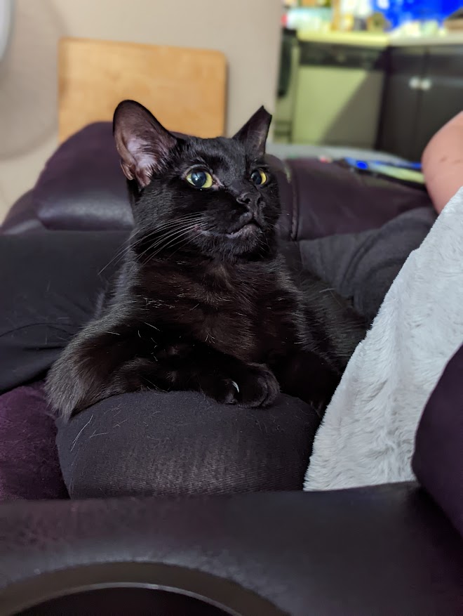 Charlie Murphy. 4 years old that we adopted about a year and a half ago. Semi-feral and hated being around humans. Warmed up to our son after a few months, then took about a year after that to warm up to me. Man of the house now that RJ passed.