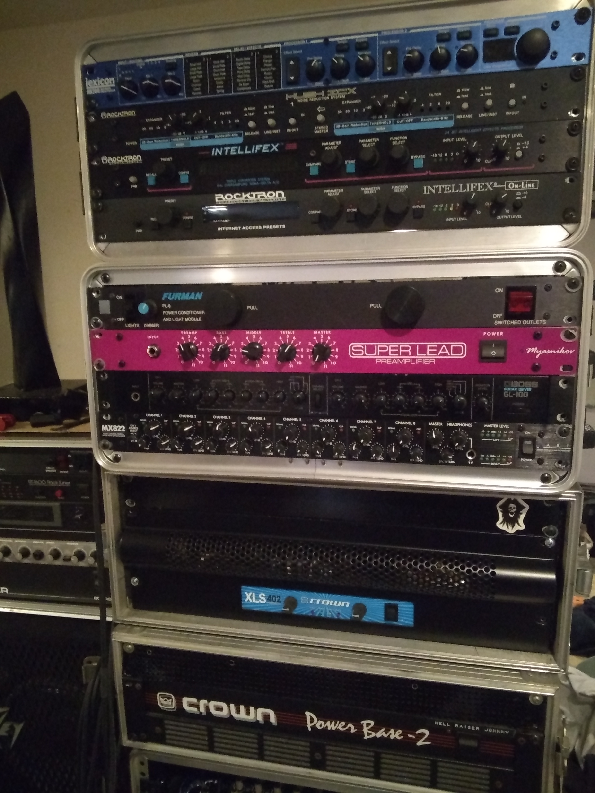 I'm looking to get out of a strictly recording\project based situation and heading back out to the local area stages. Had several auditions so far, just not finding that right gang of dudes (Band), but it'll come. Nice thing is I set this up to use through anything from my Crown PBII\4 Marshall 800 B cabs to a 2X12" combo amp.