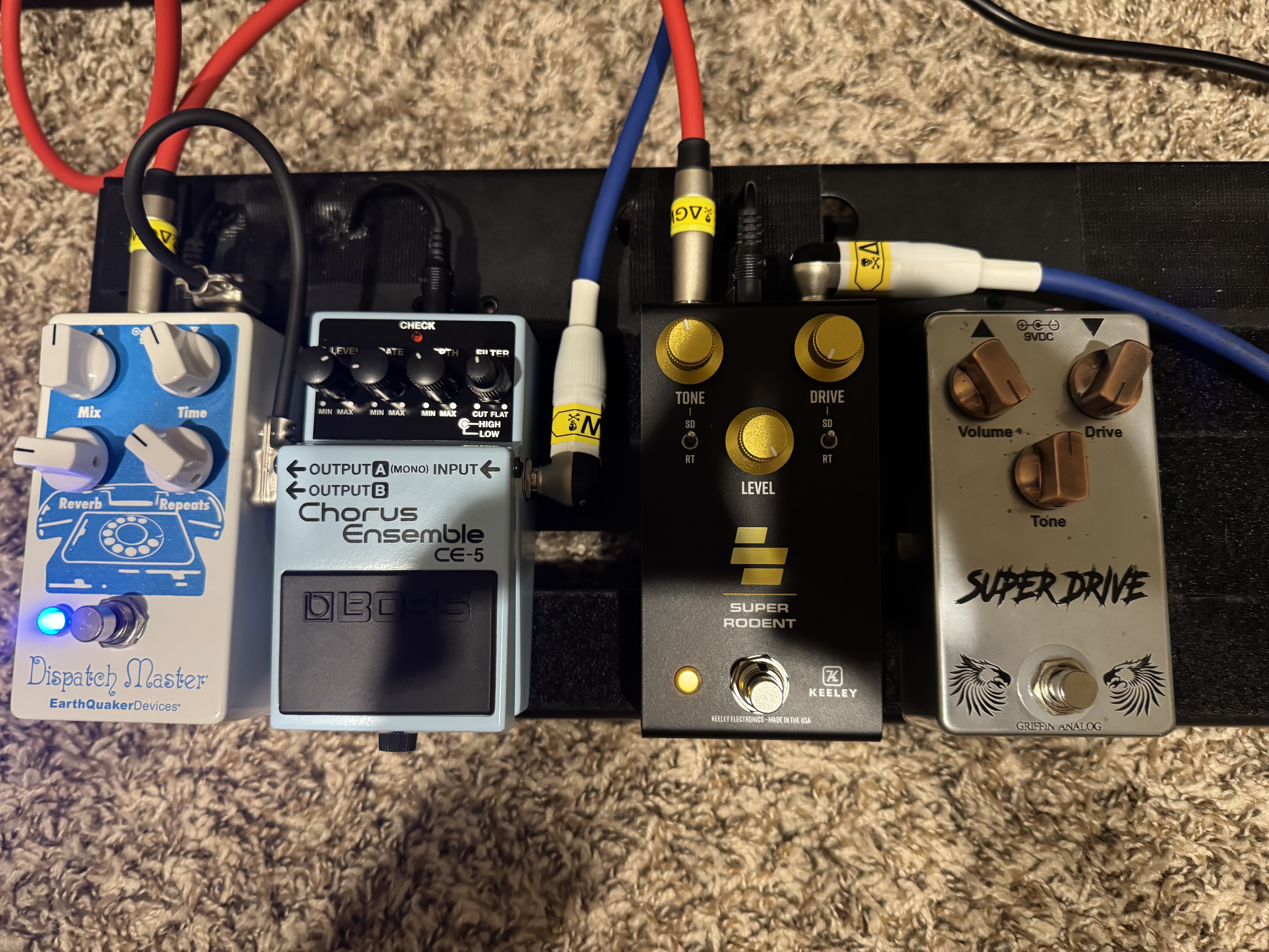 I have the same two pedals, Griffin and Keeley and do the same thing, lol. I have two pedalboards, one for gigs and one for home.I’ve figured out this is all I need. The Griffin SuperDrive and the Keeley Super Rodent get rotated depending on my mood. I’ve recently packed up about 30 pedals and put them away in my closet.