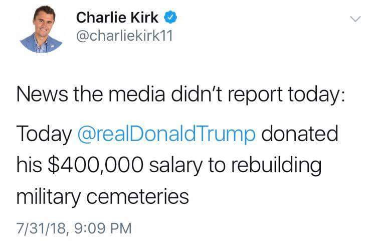 The ONLY reason Trump is relentlessly attacked is because he stands for everything the government politicians don't , Trump never accepted a salary and donated it every year to causes to help the inner city poor and Americans veterans .
