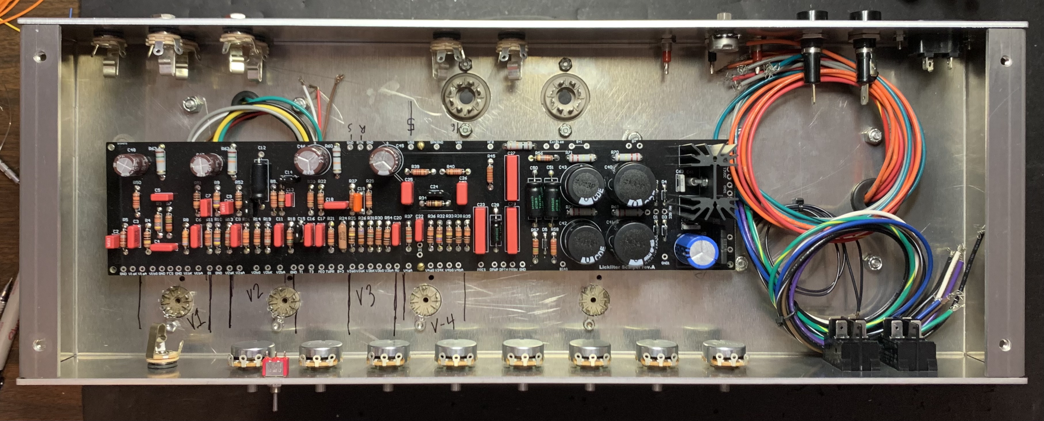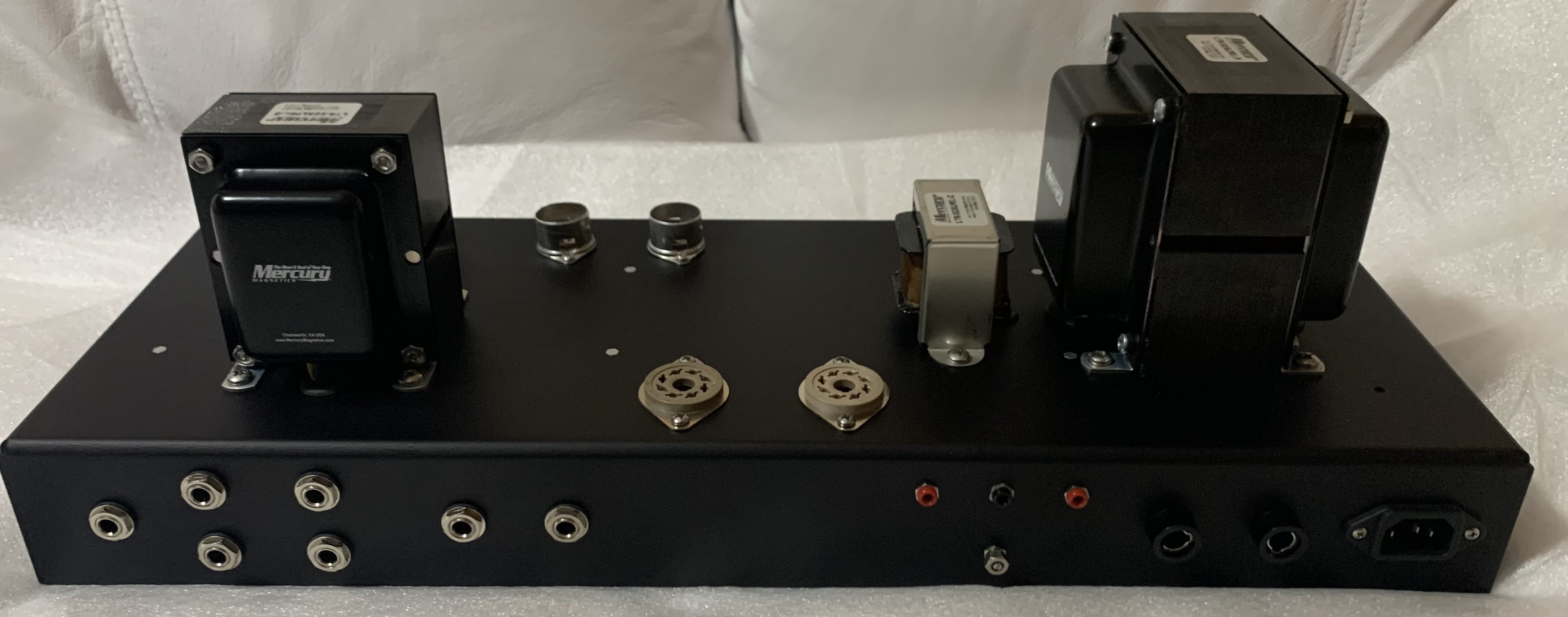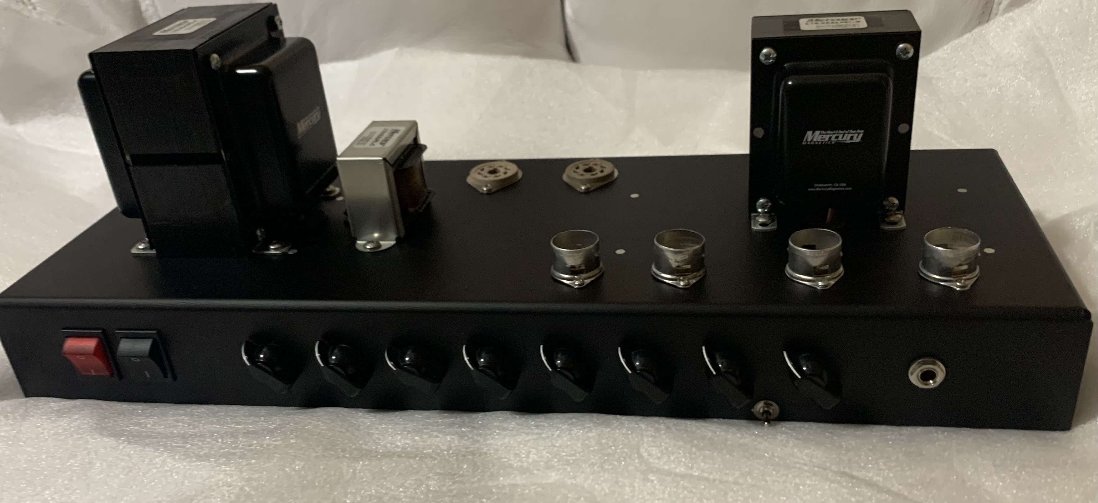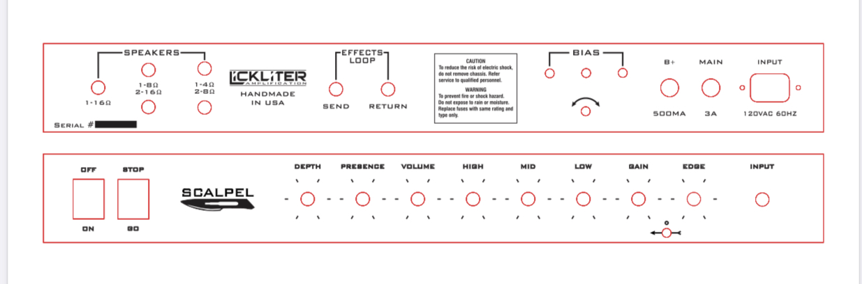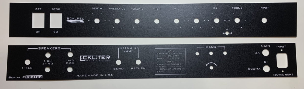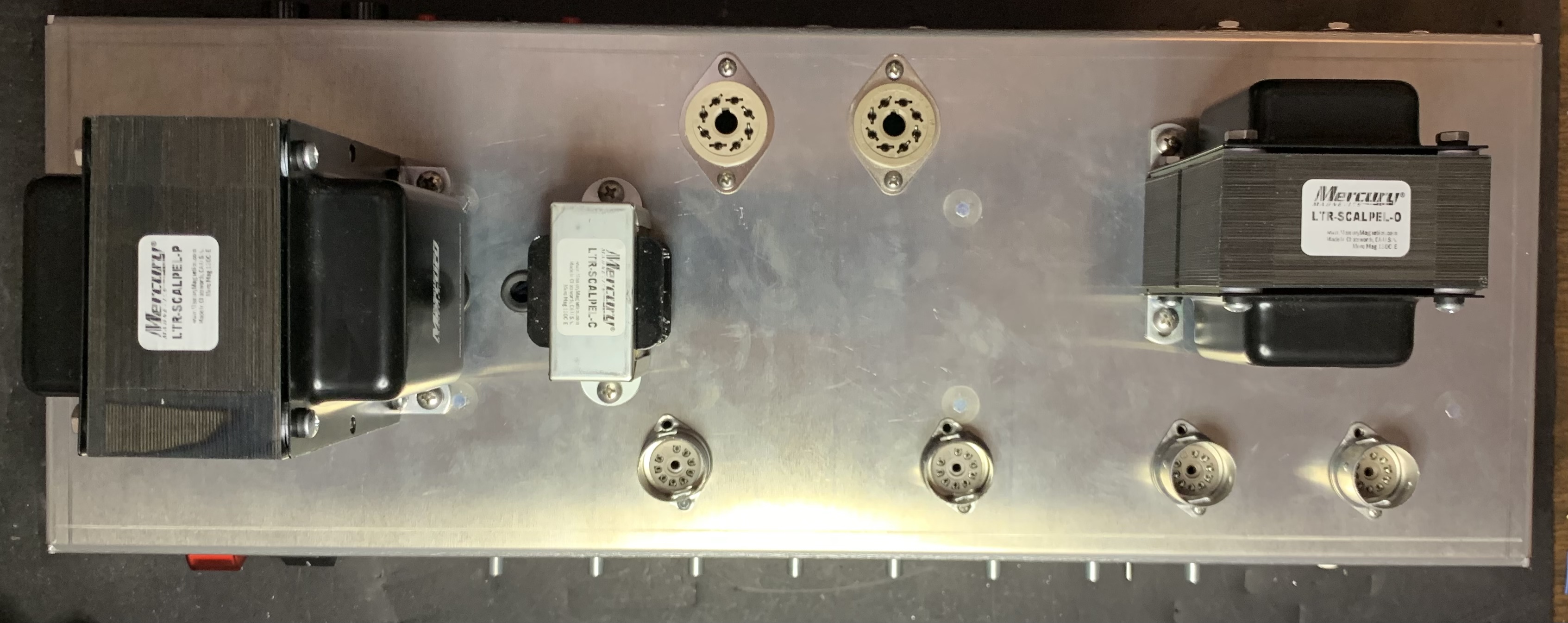 The Lickliter Scalpel 50 is coming to life. I have the 1st prototype board I’d loaded and I have a chassis for it. This will be the 1st PCB that I have built for my amplifiers. I have been testing the circuit for quite a while in a turret board style amp and the results have promising. The new model will be sporting Mercury Magnetics iron, DC heaters, tube effects loop, and acrylic front panel with LED’s