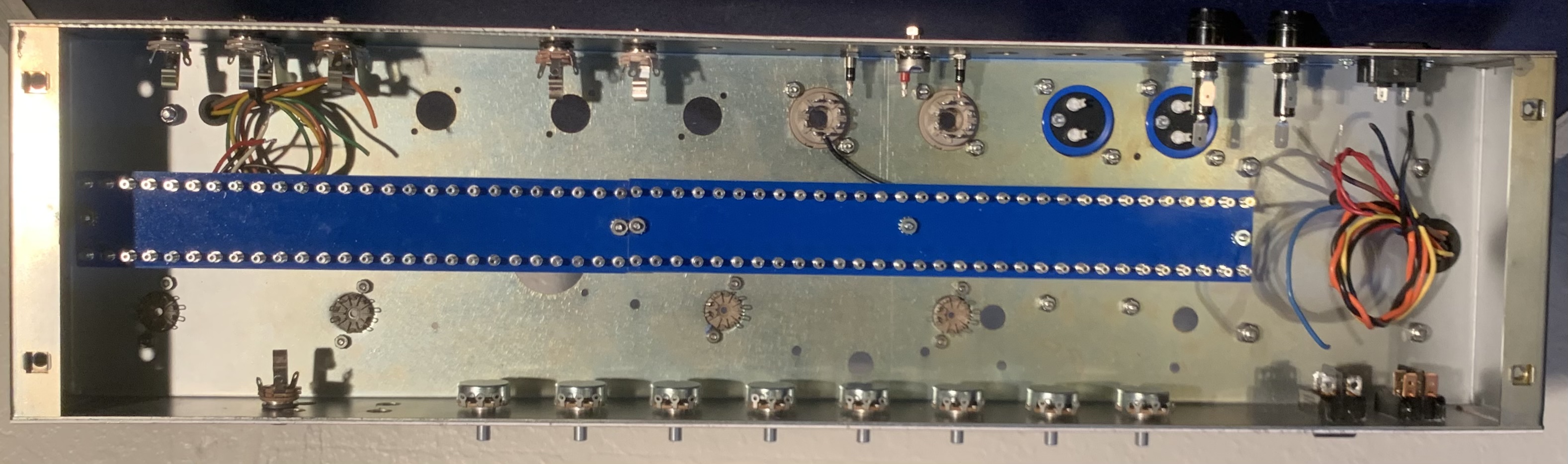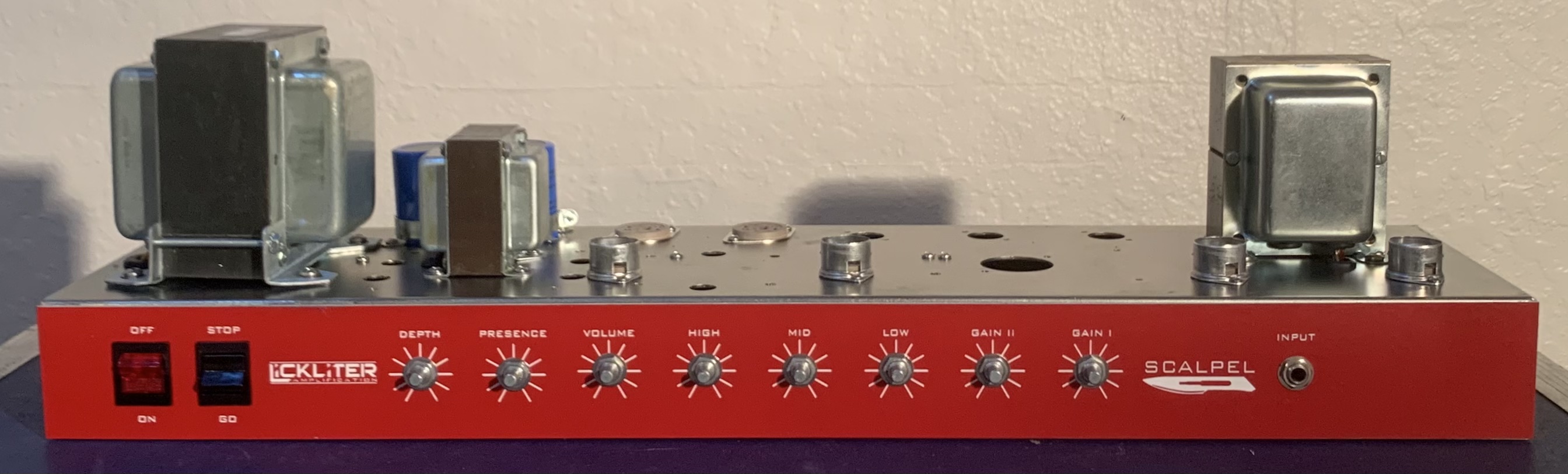 Working on my Scalpel 50 watt design. Straight forward high gain single channel with loop. Let the wiring begin!! Amp will be using Heyboer PT and Dagnall output transformer.