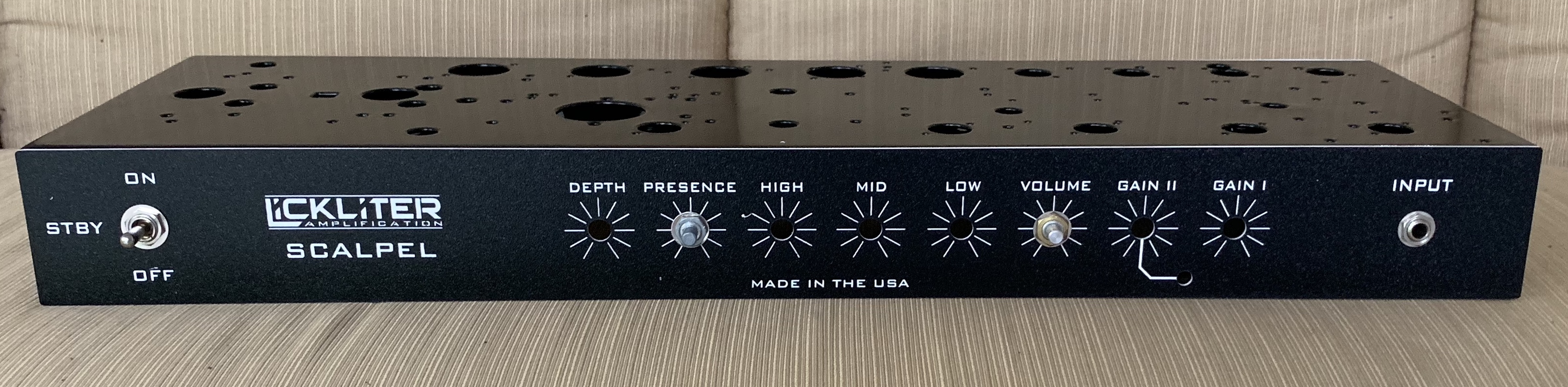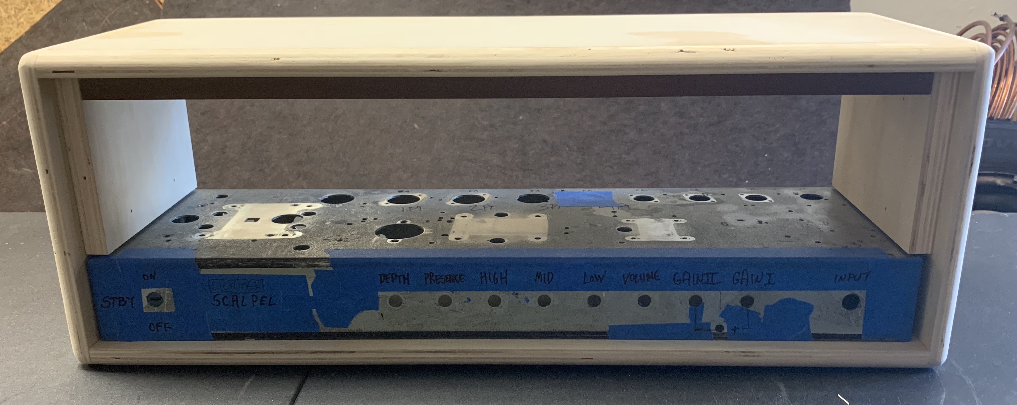 I am building a single channel Scalpel. I will post build pics as progress happens. It will be high gain with effects loop. The chassis is a Laney, and will be 100 watts and have Heyboer transformers. I will post clips when completed.