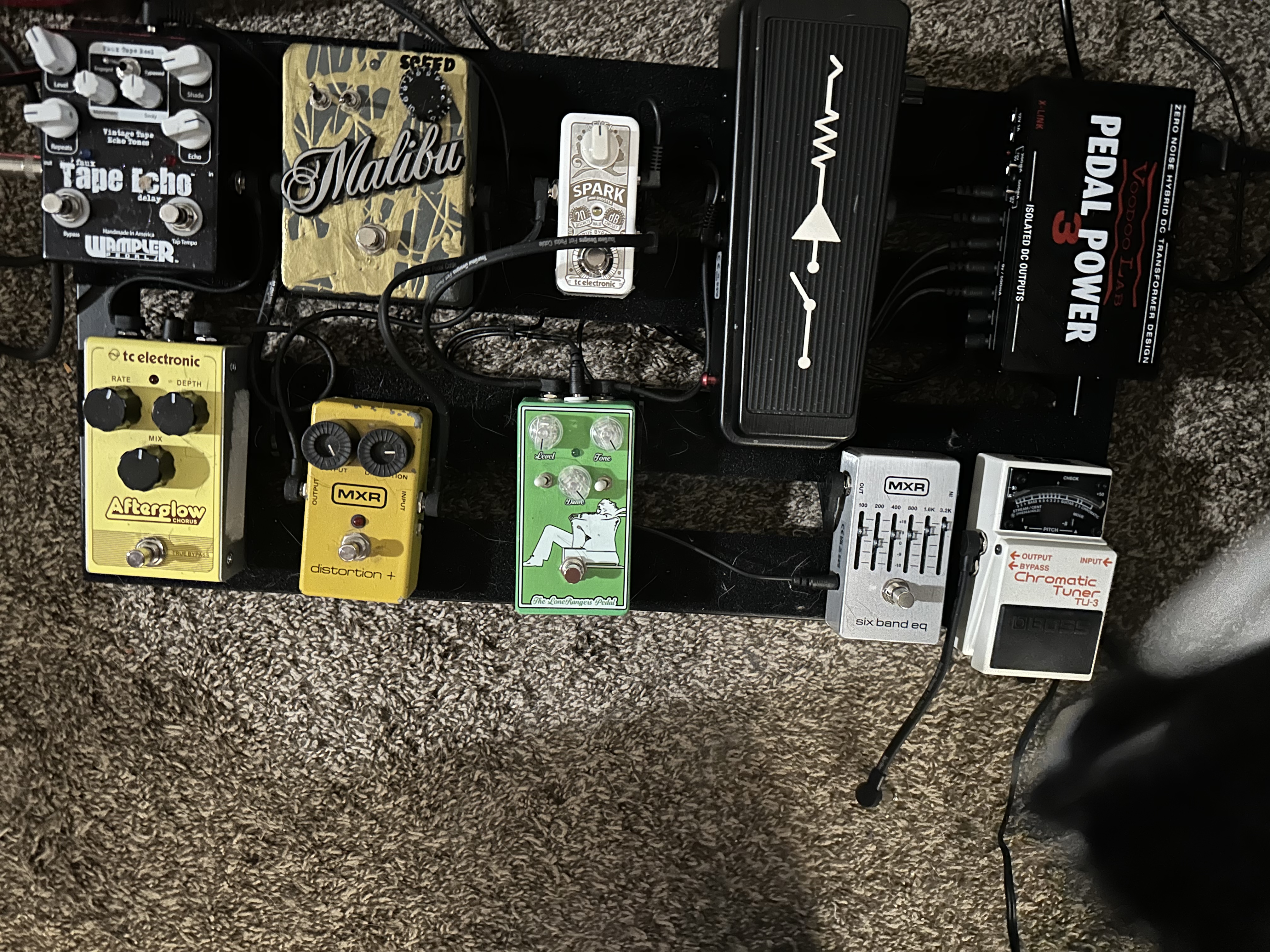 Bought it complete. Wanted to try the pedal board thing but found out I’m still a plug into the amp guy. Everything you see minus the wah....Wampler delay, stew Mac phaser kit pedal, tc electronic chorus, MXR six band eq, tc electronics clean boost, MXR distortion, music man distortion, power supply, patch cables, and carrying case. $750 or trade equal value. Located in Albany NY