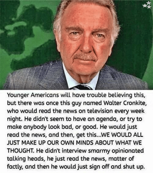 I was going to metion Walter Cronkite in my reply. Yeah... those days are gone.