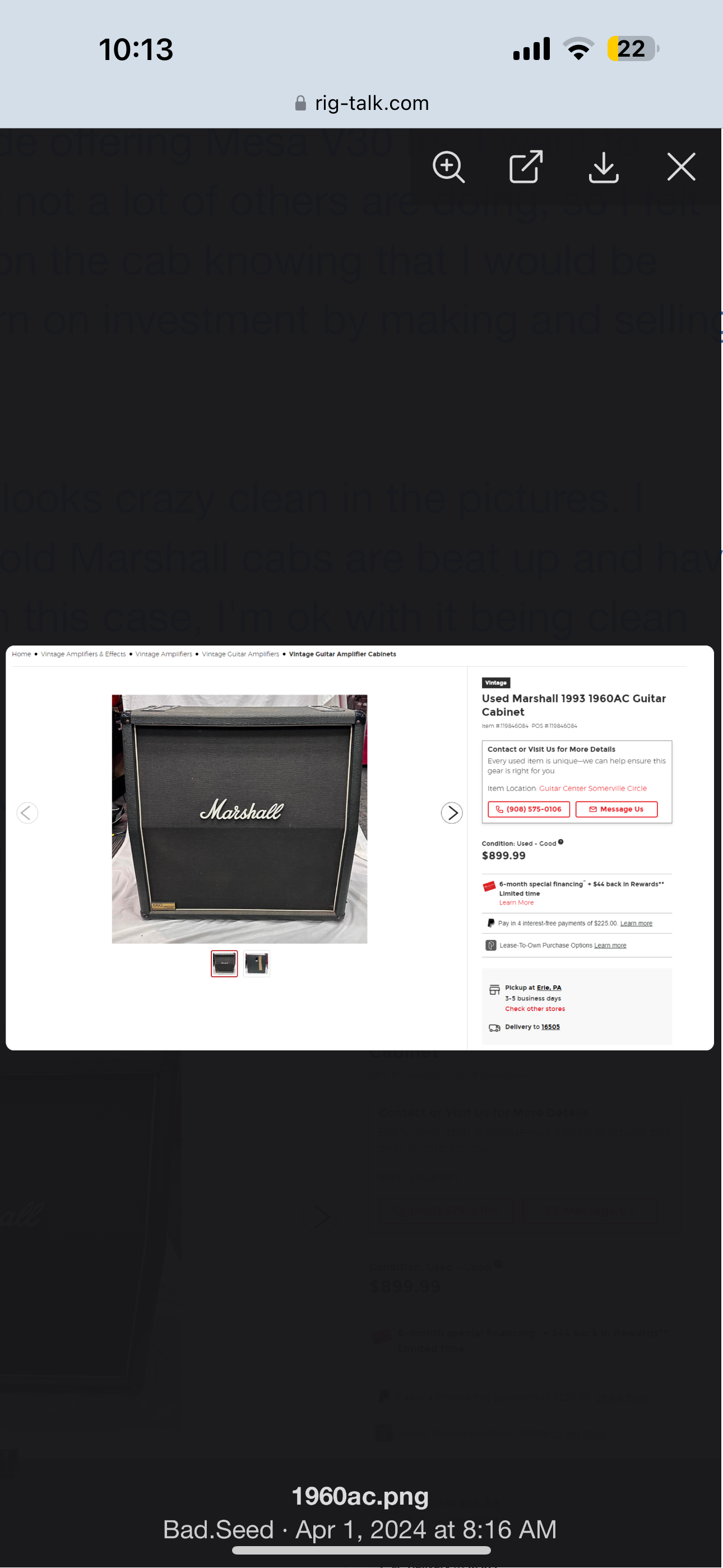 5 50WEST Well-known member Mar 25, 2025 #1 Looking for a Marshall 1960AC Classic - 4x12 with the 6402 Cones. If you have one and are looking to sell please let me know, or if you know where 1-2 are I’d really appreciate it. They look like this old listing below. Thanks! Attachments IMG_3625.png 753 KB · Views: 162