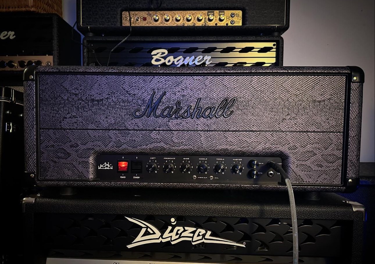 mark III with Michael Klein’s trifixion mod. Reverb circuit out of the mix. Presence moved to front. Heft (depth) control added in back.