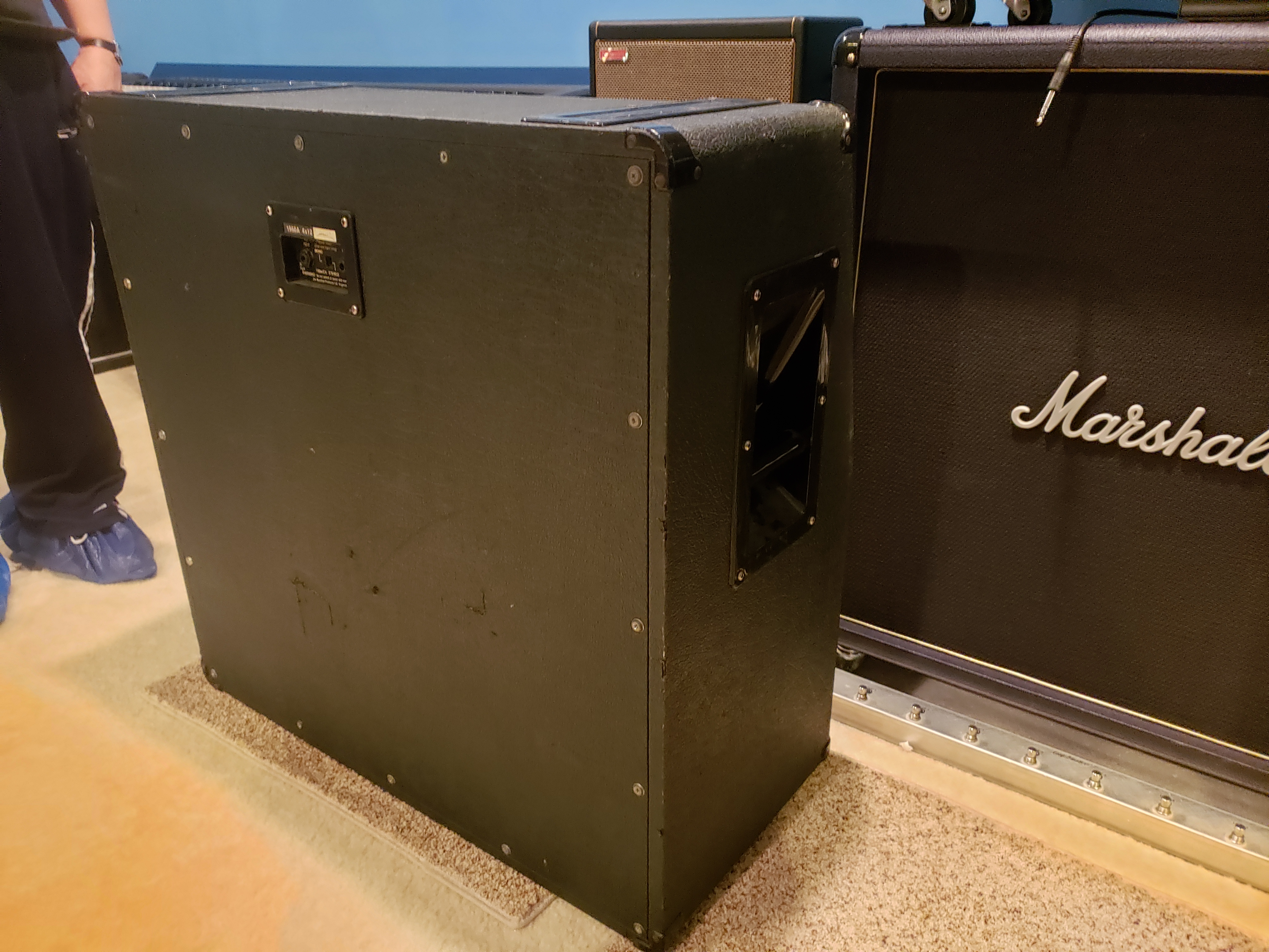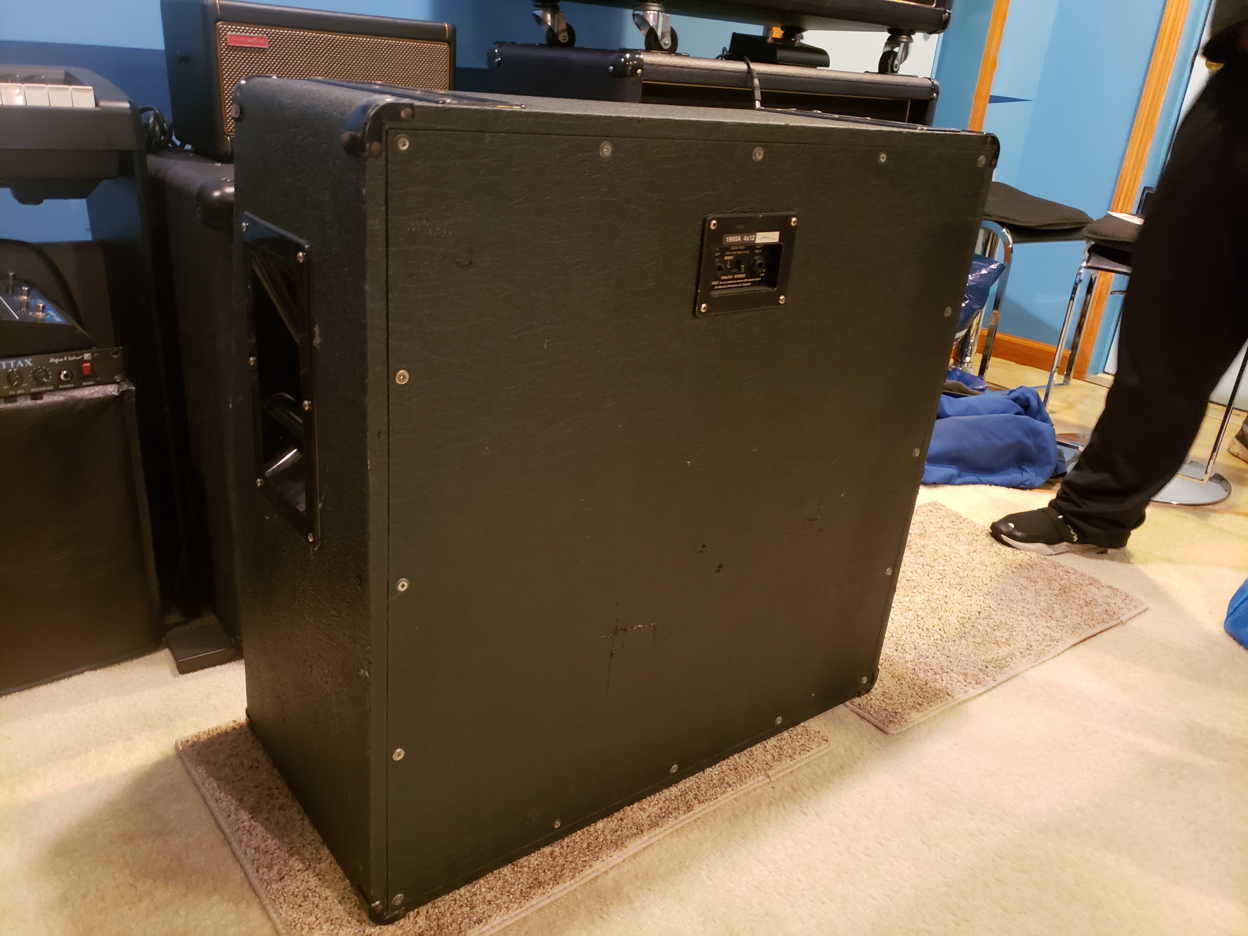 It is in really good condition for a 25+ year old cab. I would rate it at a 7.5/10. It has some small tears on the back, some scuff marks and some discoloration on the grill but nothing major. It will clean up nicely. I bought it used about 17 years ago and kept in the studio ever since I had it. I probably put about 50 hours or less use on it since I bought it.