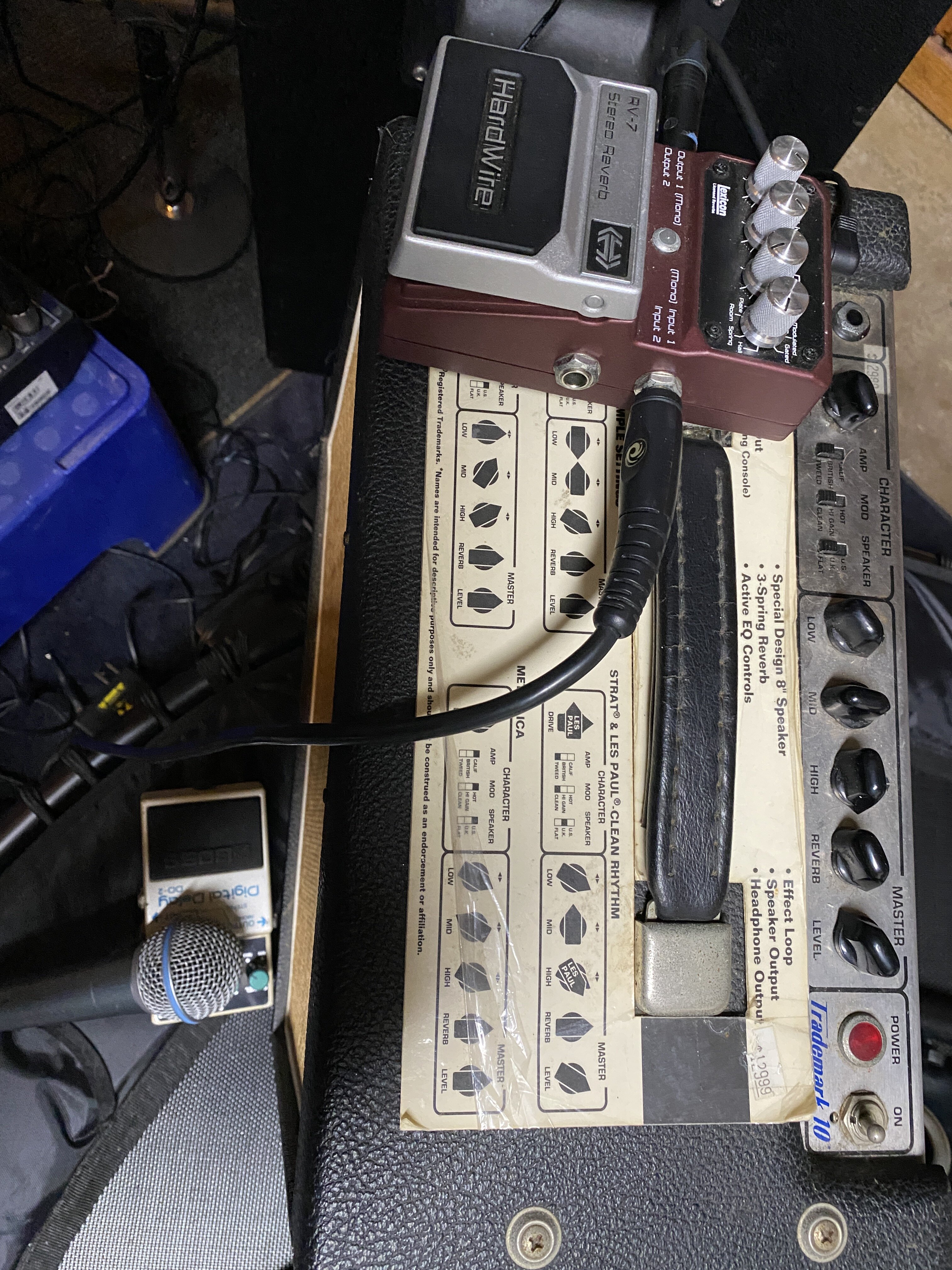 line out of Peacemaker into Hardwire reverb pedal - hall setting into the fx return of this dinky Tech 21 Trademark 10 combo i had collecting dust because the main input jack doesn’t work
