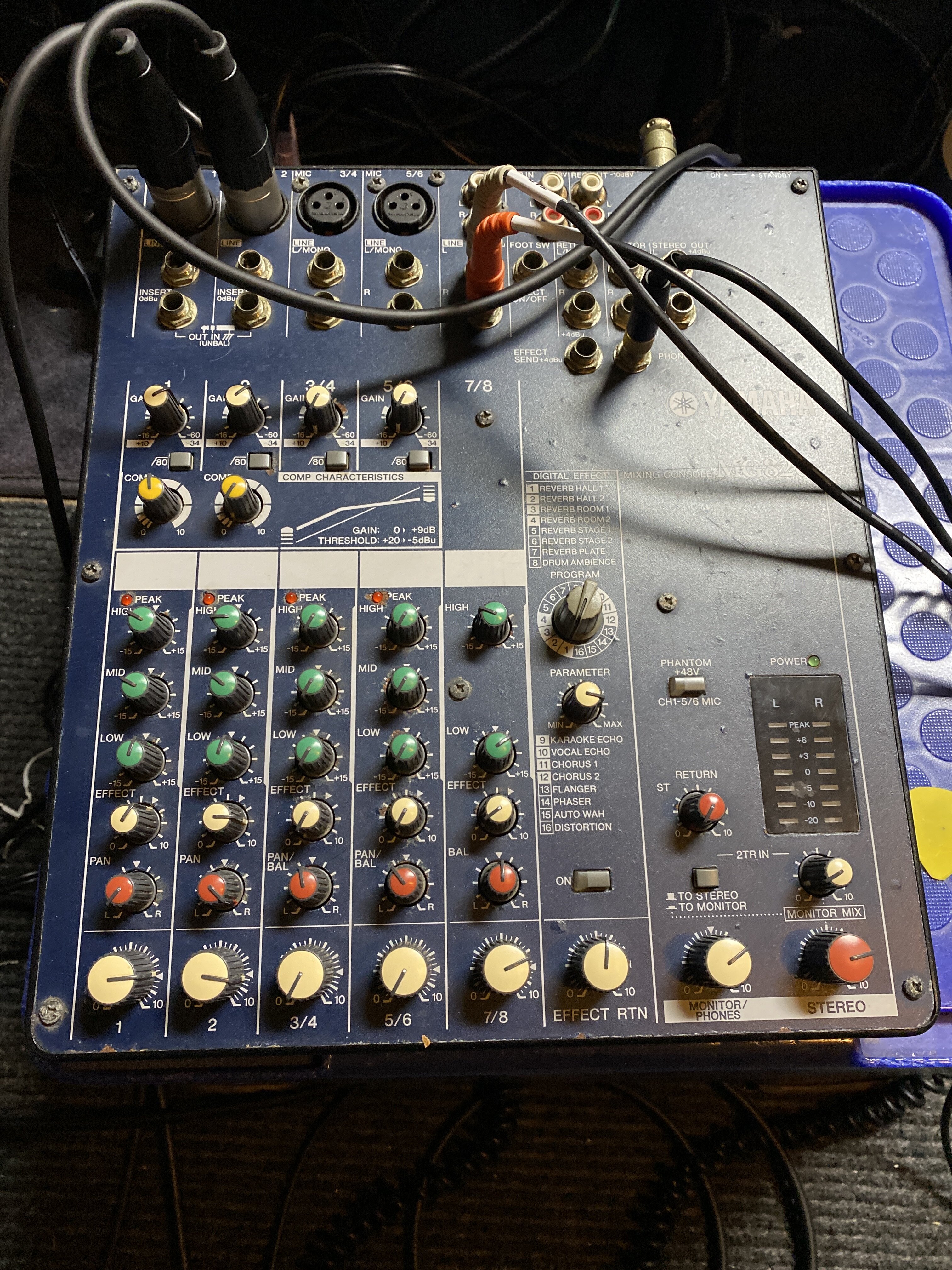 tonex pedal adds a little verb/delay to the front of Peacemaker, and this equally ghetto Yamaha mixer i bought at a pawner for 60 bones and barely works is panning dry left/wet right and adding a extra dash of master reverb.