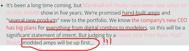"For extra 999.99$ you can now have your Marshall amplifier MODDED! No matter that you payed 2000$ for your amplifier itself already, this is something that you absolutely need!"Maybe you'll have to buy the amp first then send it back to the factory for a mod.