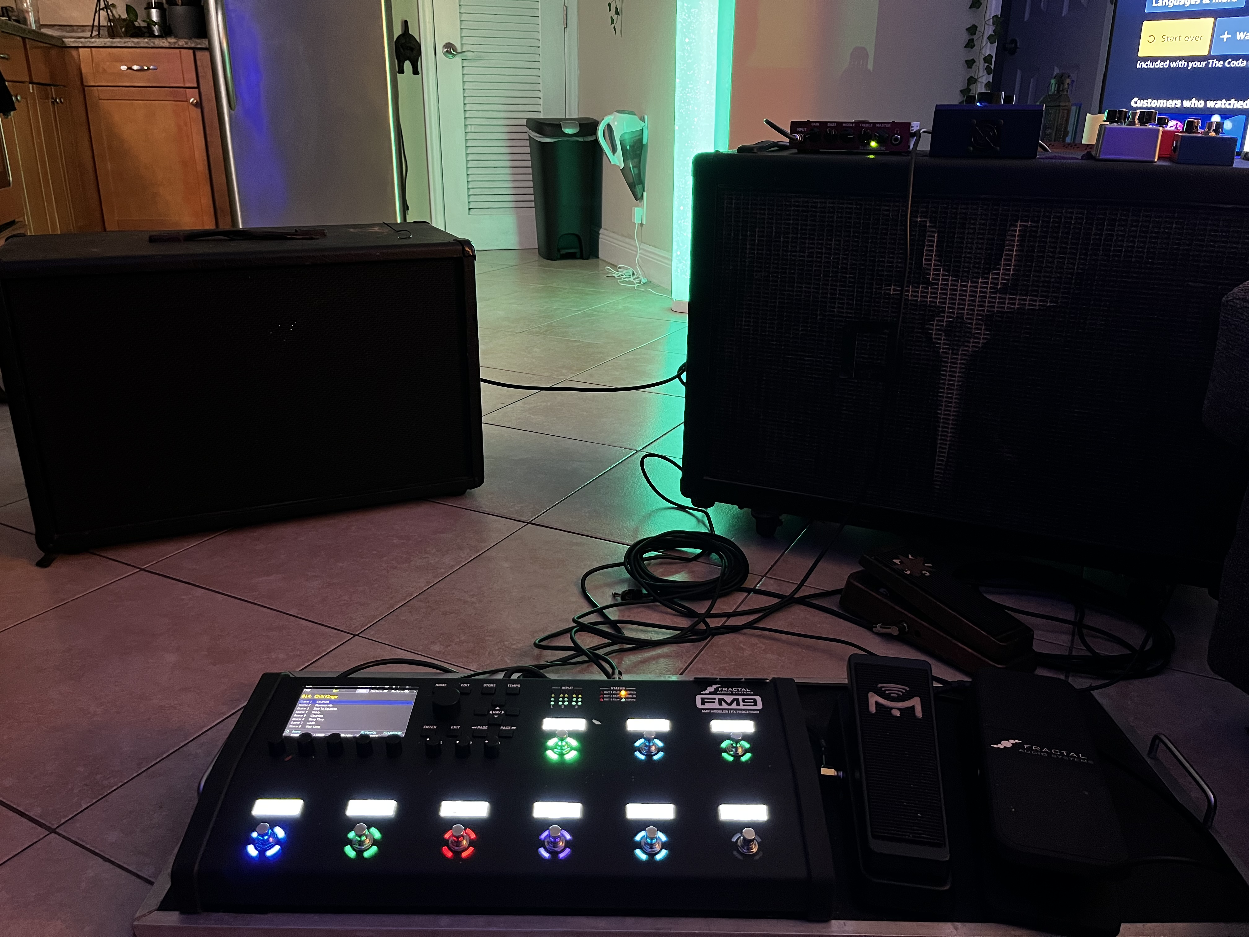 About a week later I was working with my system, creating some presets in the AxeFX3 and the amp started acting funny. The "A" channel started cutting in and out and then went out all of the way. Soo... I called Andy again and explained what was happening. After a long lecture, about how 99% of this type issue has been a cable issue, I heeded his advise and purchased all new cables and tried again... NOTHING! I contacted him again and explained it all to him again. And again the lecture about cabling. I assured him that I had tried everything. He agreed to have the amp returned for repair. After about two weeks I contacted him to find out the status of my amp and he told me that the amp was working perfectly and there was no issue that he could find. Again he mentioned how 99% of the issues found are due to bad cabling. Again I reiterated that I had replaced all cables with new ones and there was no change. I requested a new amp for a replacement and after going back and forth he finally agreed. Or so I think he did because there is really no way to tell as none of these amps have a serial number or a manufacture date or anyway to identify that it is different from any other one. So I receive the "NEW" amp back about a week later (3 weeks without the amp) and it seems to be working fine. Woohoo we are back we are back! So I finally get to finish polishing my presets for use with the Matrix and start using it LIVE! Sounds fantastic! I do 2 shows with my band and it is amazing!