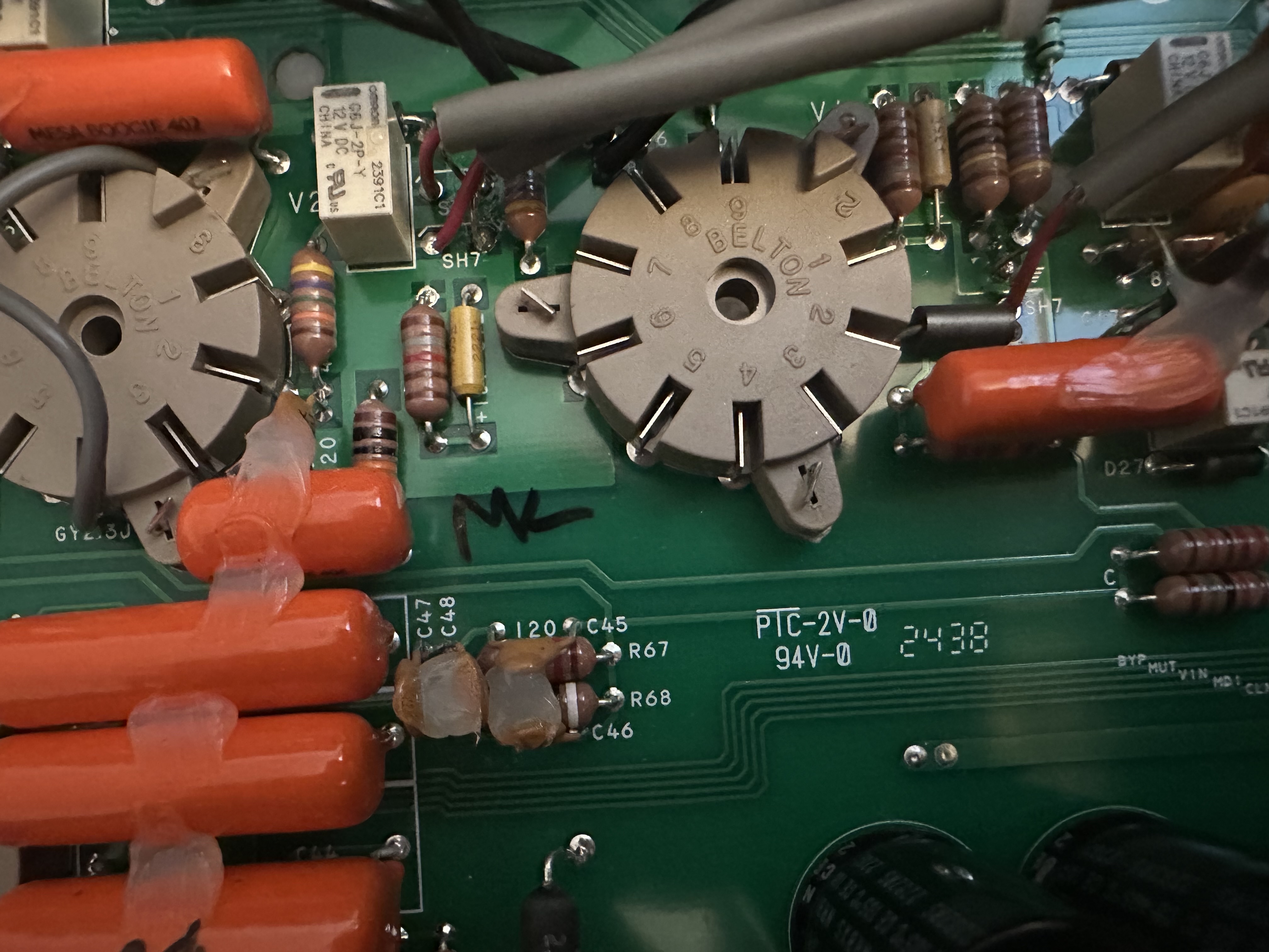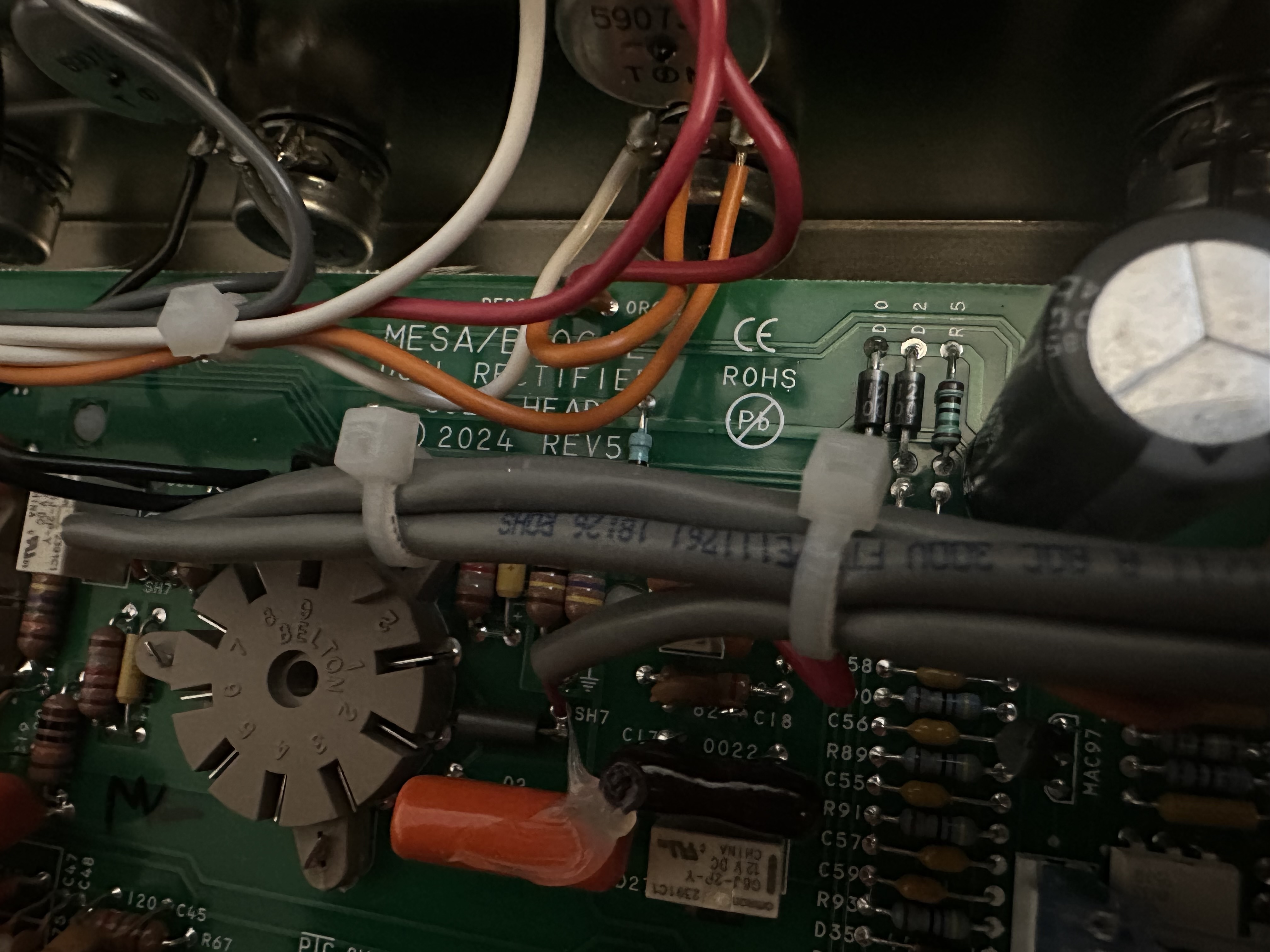 The amp came loaded with Mesa branded JJs in both the preamp and power amp. I think it’s safe to say the amp was designed with those tubes in mind. Mesa has slightly tweaked things over the years to accommodate the tubes available, and JJs seem to what was in mind for this amp. The moment you swap tubes, it gets inherently brighter with something like the older Beijing ‘90s ECC83s.