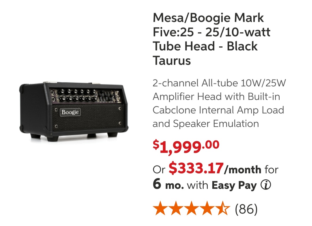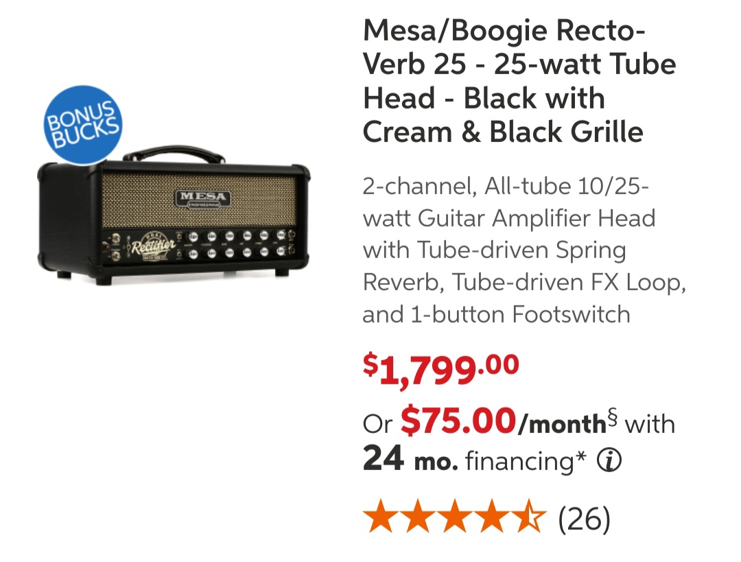 Man, the Rectoverb 25 is $1800 now???? What the...? The little Mark V25 is $2000??? Wow! How on earth did we get from $1299 to $1999 in just a few years? Well, whoever bought Mesa Boogie has loads of confidence because I don't know who can afford gear at today's prices.