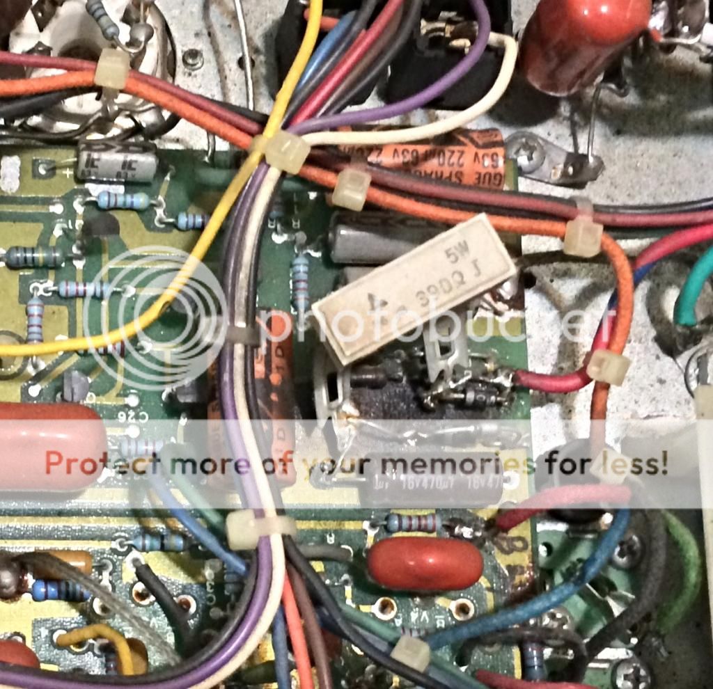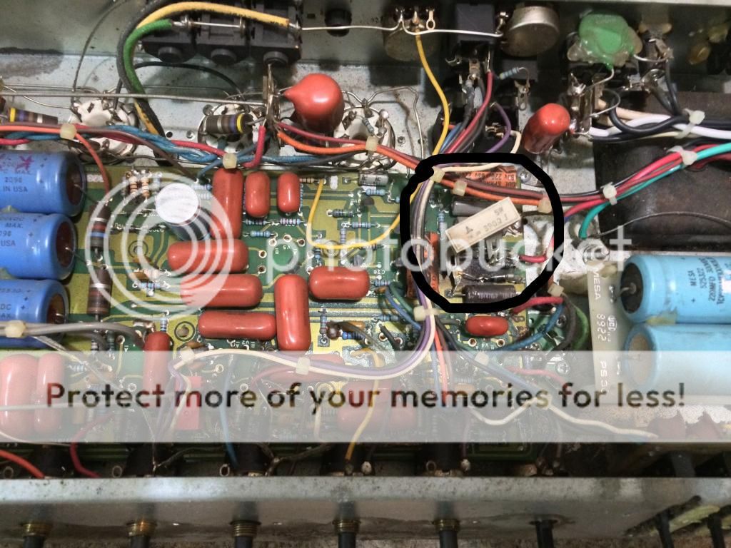 I opened my blue stripe Mark III today to take a look around and snap some pics to compare to other gut shots. I found this weird little box that I can't find in any other mark III's. Anyone have an idea what this is? The board around it looks burnt and the solder job isn't the cleanest so assuming it's not stock. To anyone who knows these amps, does everything else look stock to you? blue stripe, simulclass, reverb, GEQ.