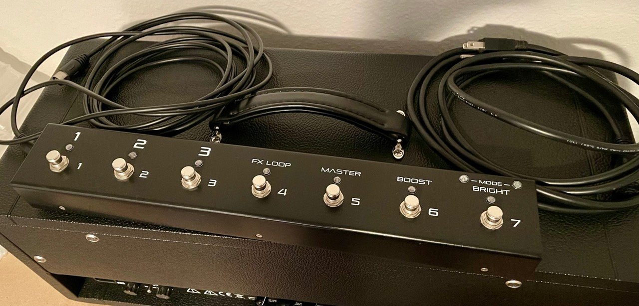 Works and sounds great. EL34 power tubes have a lot of life left in them. Comes with MIDI footswitch, MIDI cable and power cable.