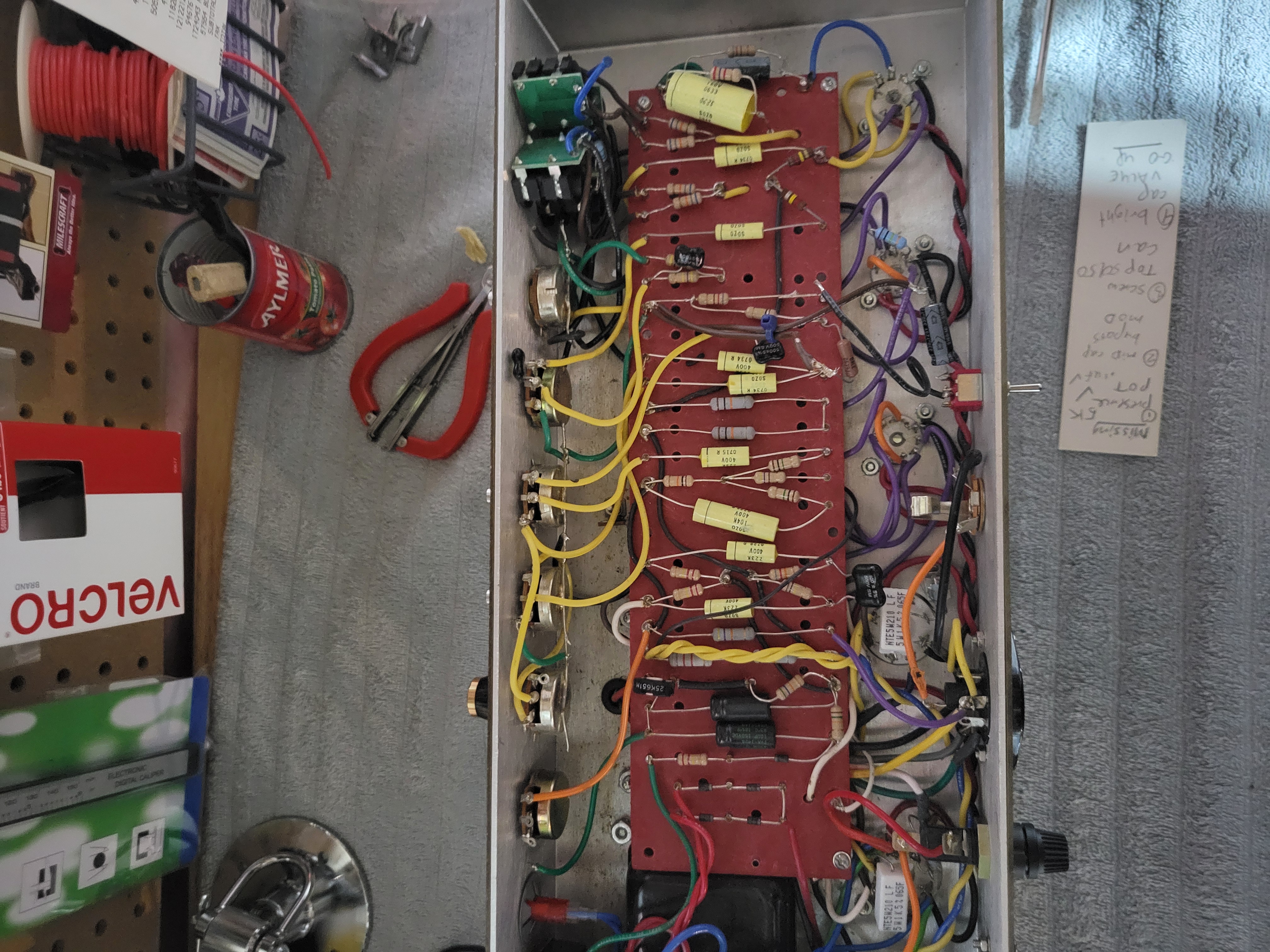 It 100% is sloppy. Looks wilder than an old Traynor and I think mine is already spaghetti. But if it fucks, it fucks! She might be sloppy but she's bringing the goods.So we agree then that it "looks" sloppy. I'm not so sure a cleaner, neater, PTP wiring job would prohibit other builders from doing the same kind of circuit experimentations.