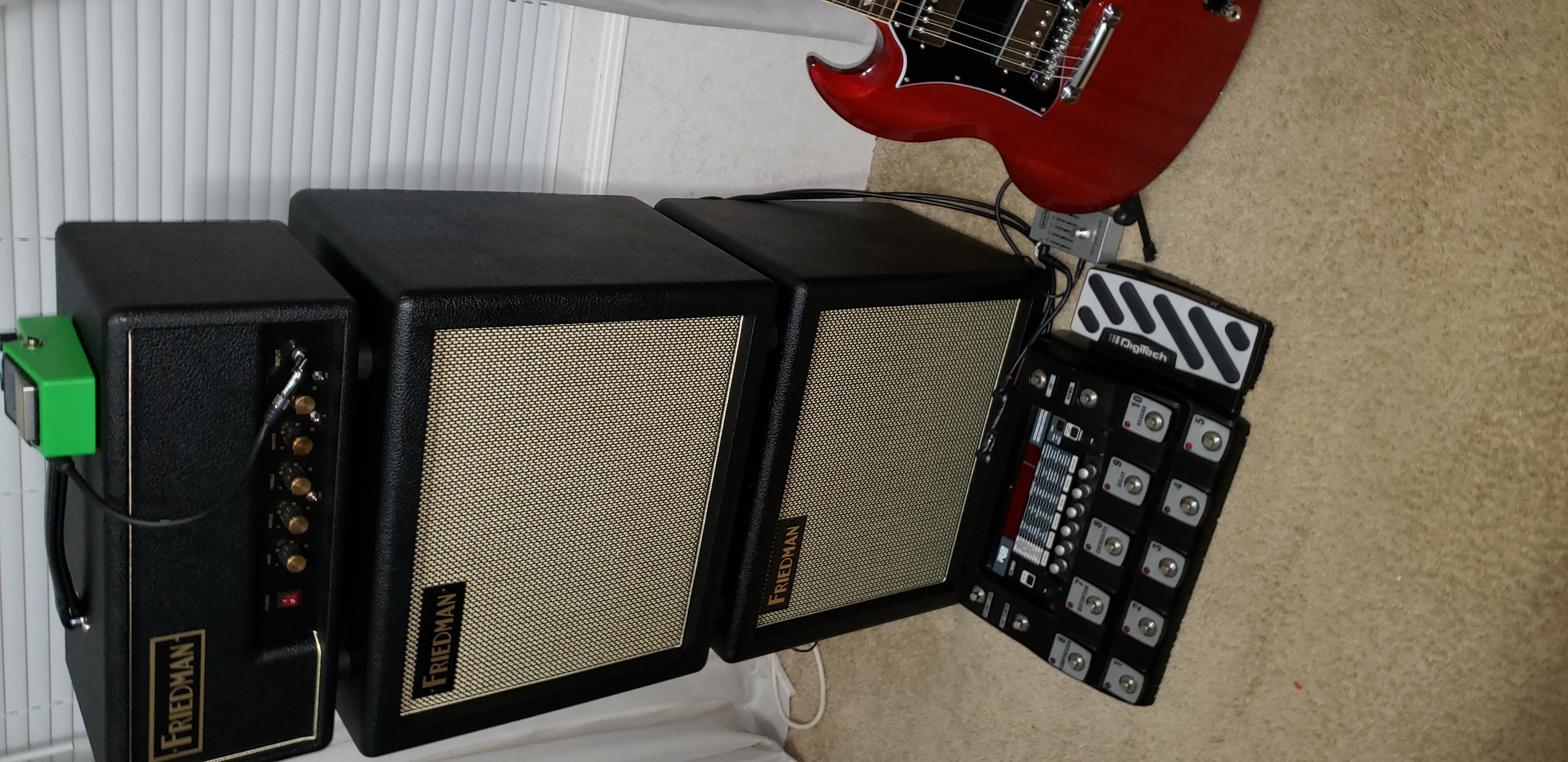 I have a 5150-III 6l6 50 watt and play thru one EVH 1x12 cab. I've considered getting a second to enhance the sound a bit. For any 1x12 cab owners, do you stack them on top of each other, lay them side by side or separate them by several feet?