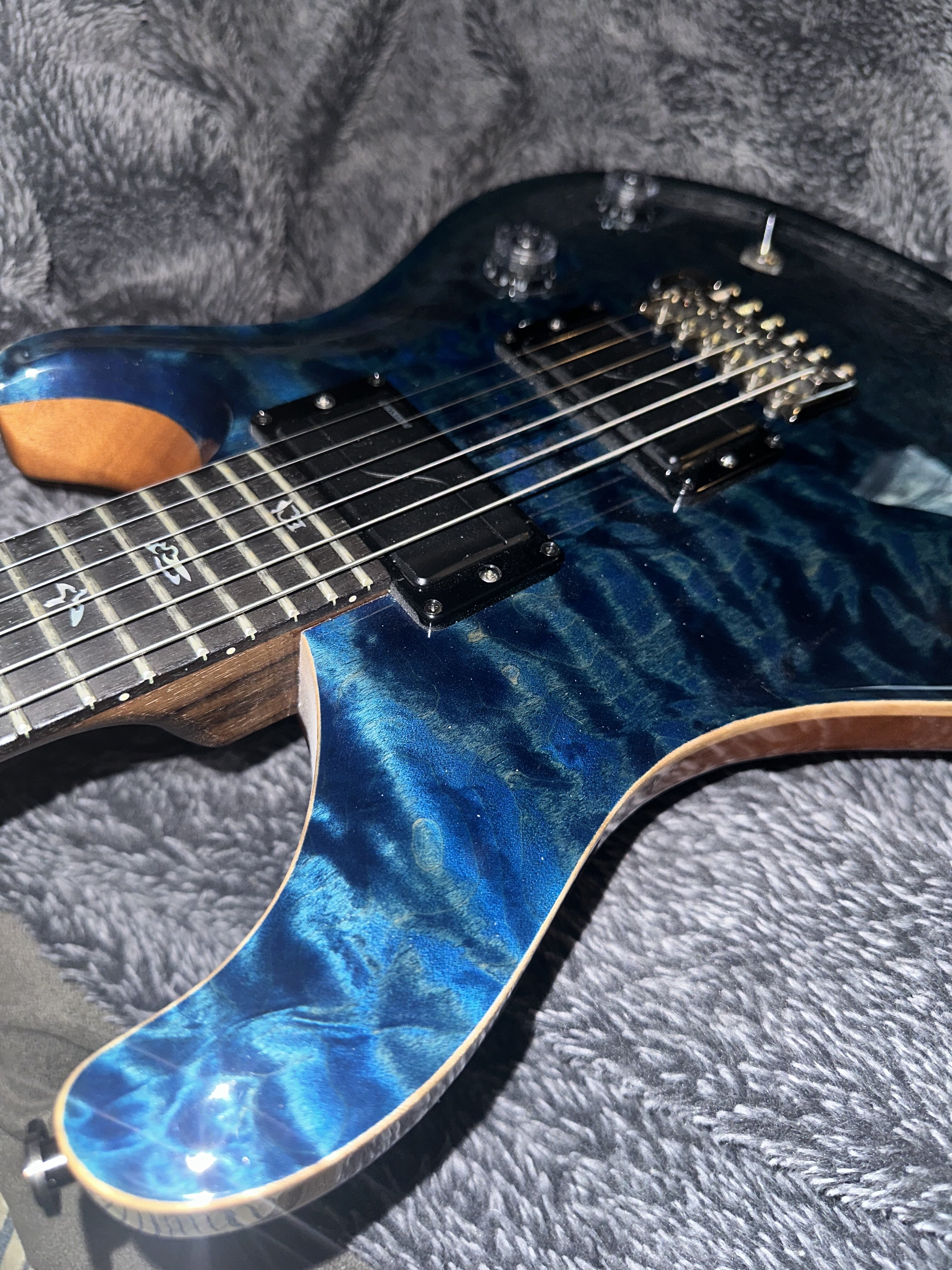 Custom 24 Wood Library in a Blue/Greenish tint finish. Has a nice Indian Rosewood Neck. Loaded up with fishman fluence modern pickups.