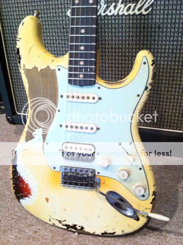 Will do - the pickguard was supplied by me though - they just relic'd it...Jet Troop":x0pm6fv7 said:sah5150":x0pm6fv7 said:Here is the final aging of the body with the aged plastic parts. This will be shipped back to me today. MJT did a GREAT job - can't wait to build it!