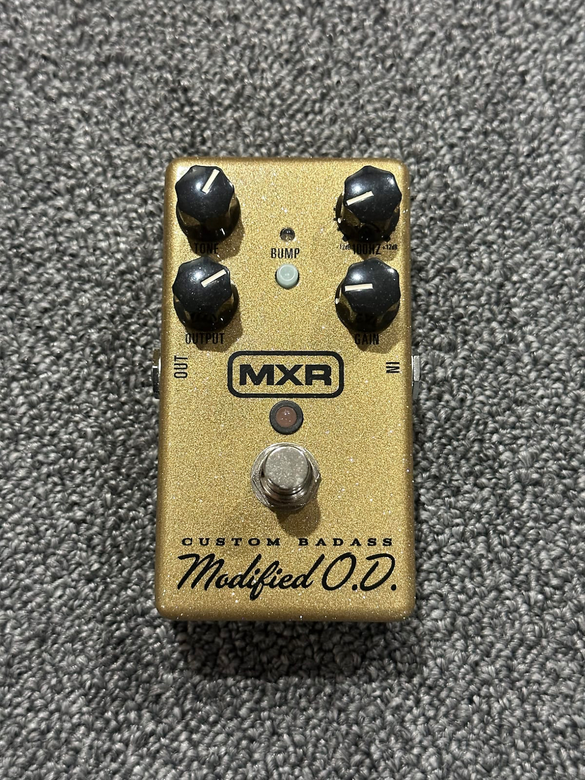 For sale is a mint MXR M77 Custom Badass Modified OD in gold sparkle. Pedal will ship with original box. $old-shipped/paypalled