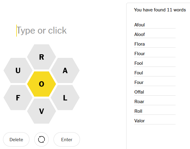 Spelling Bee - words must be at least 4 letters and contain the center letter.