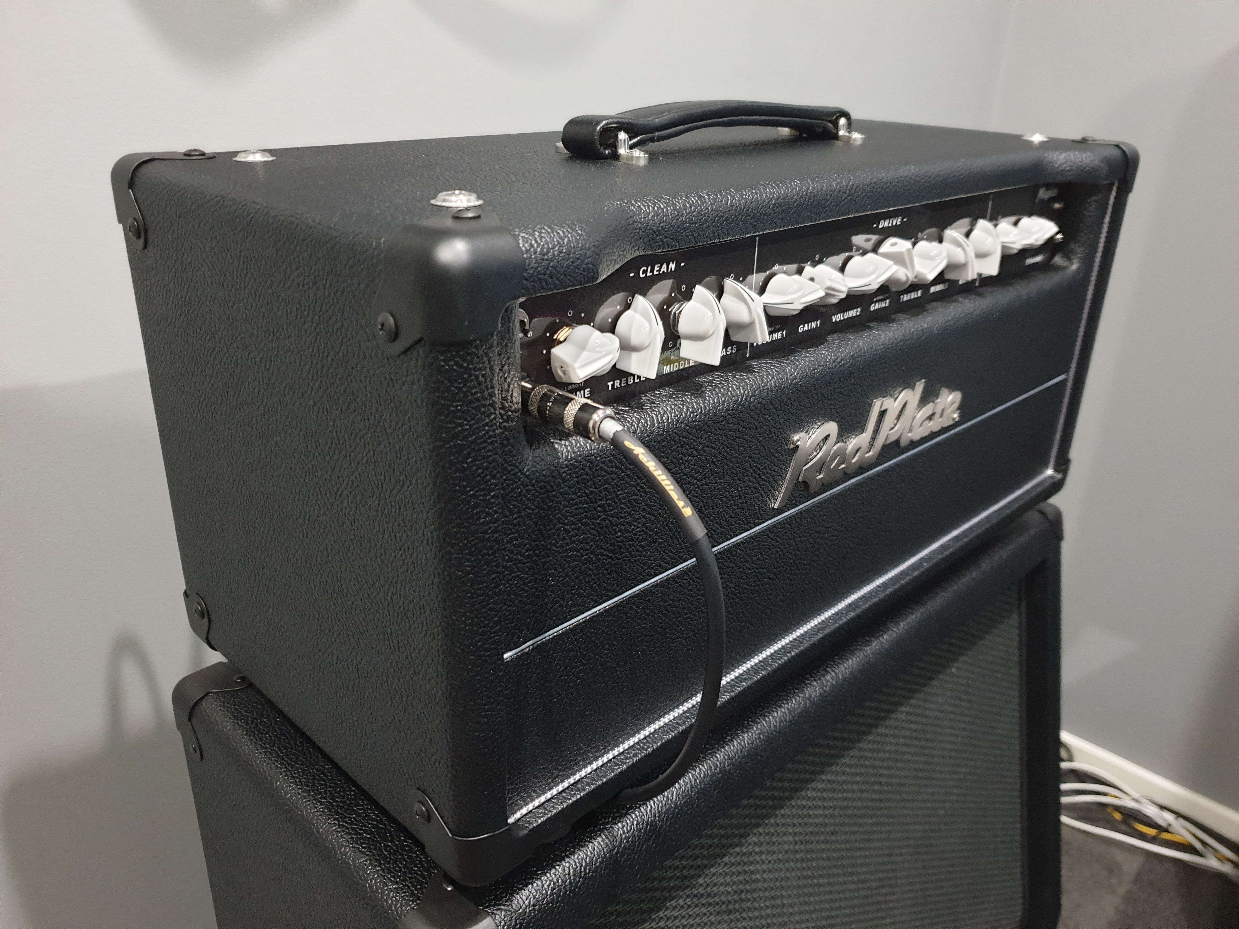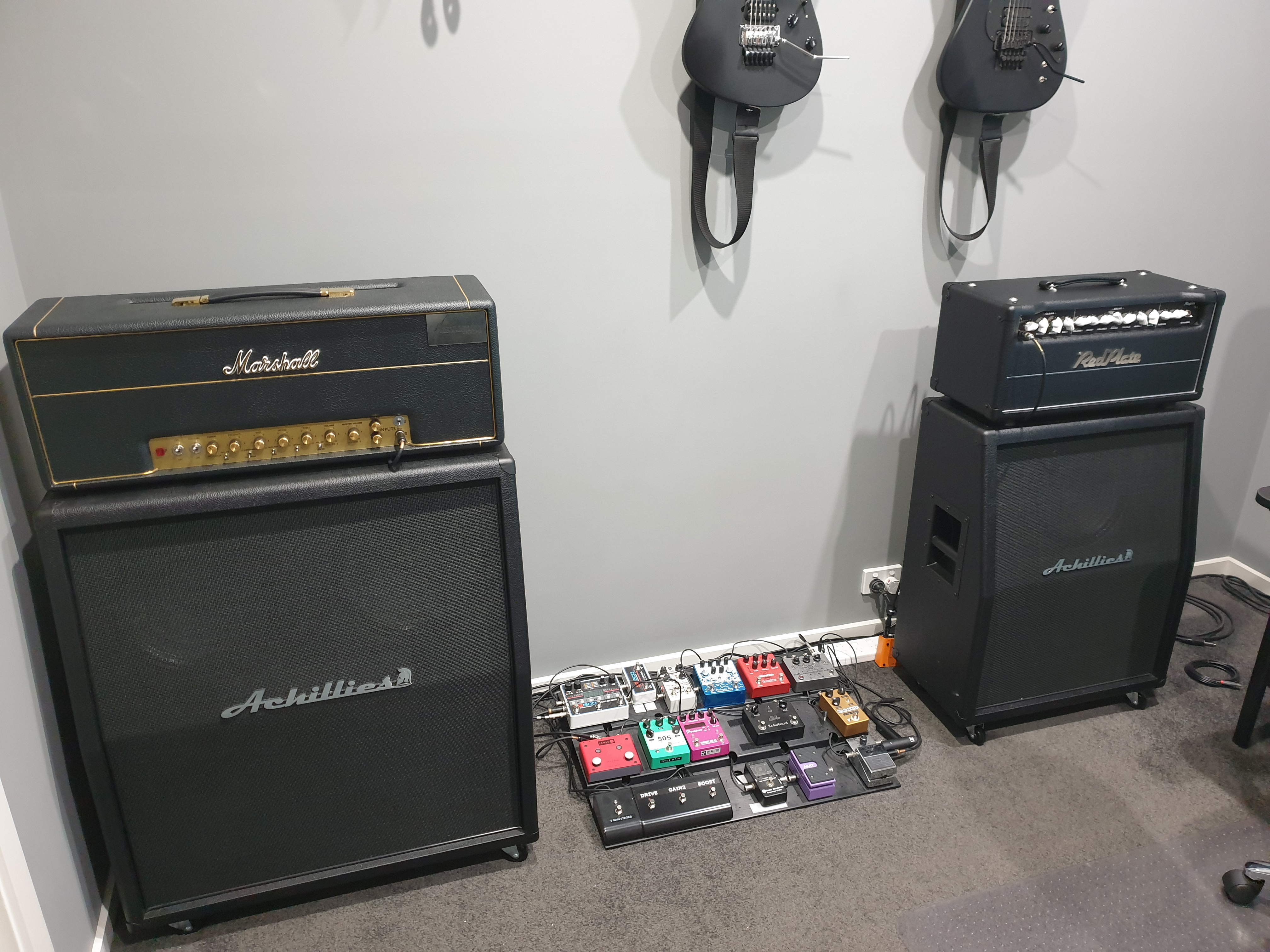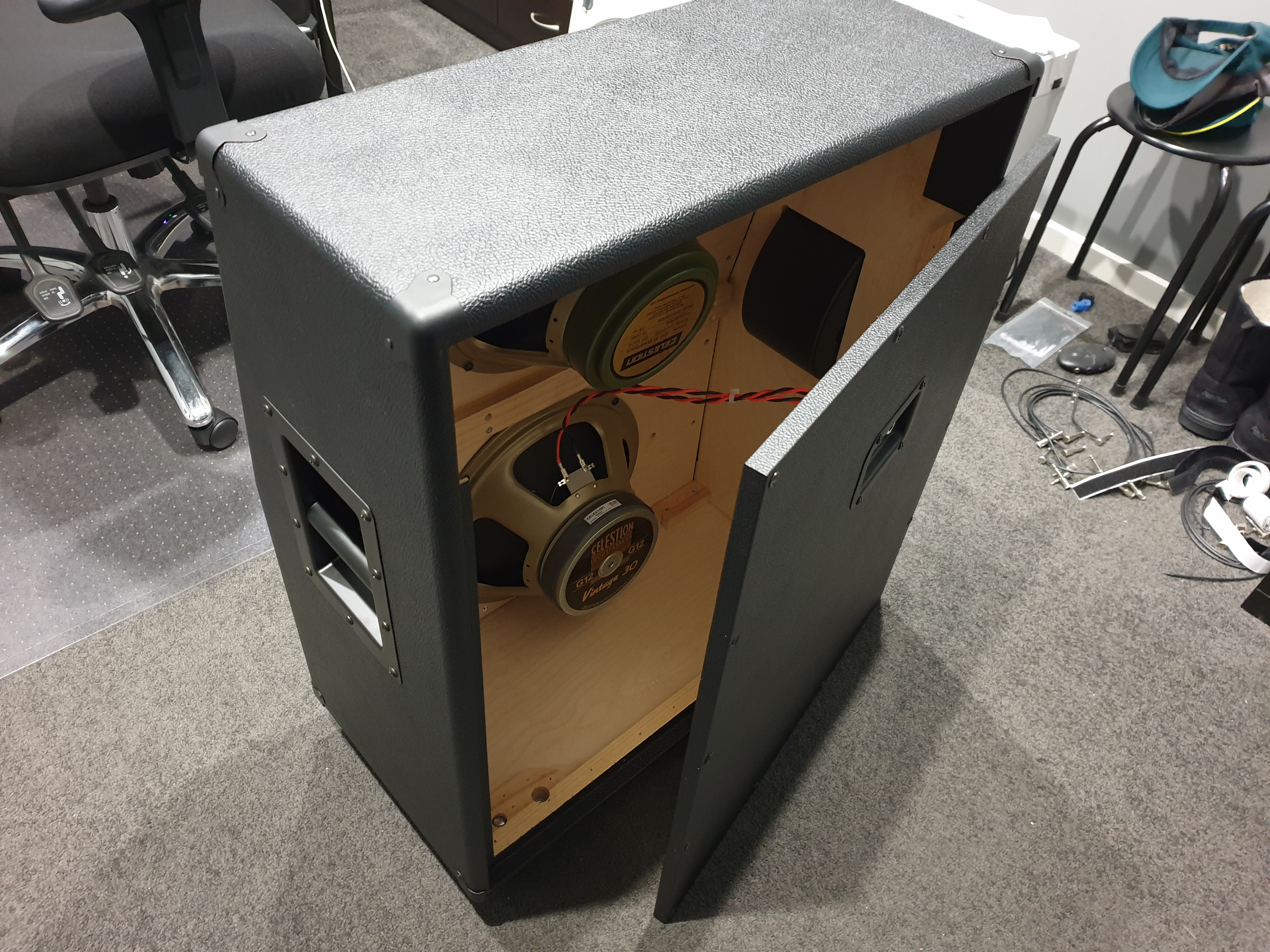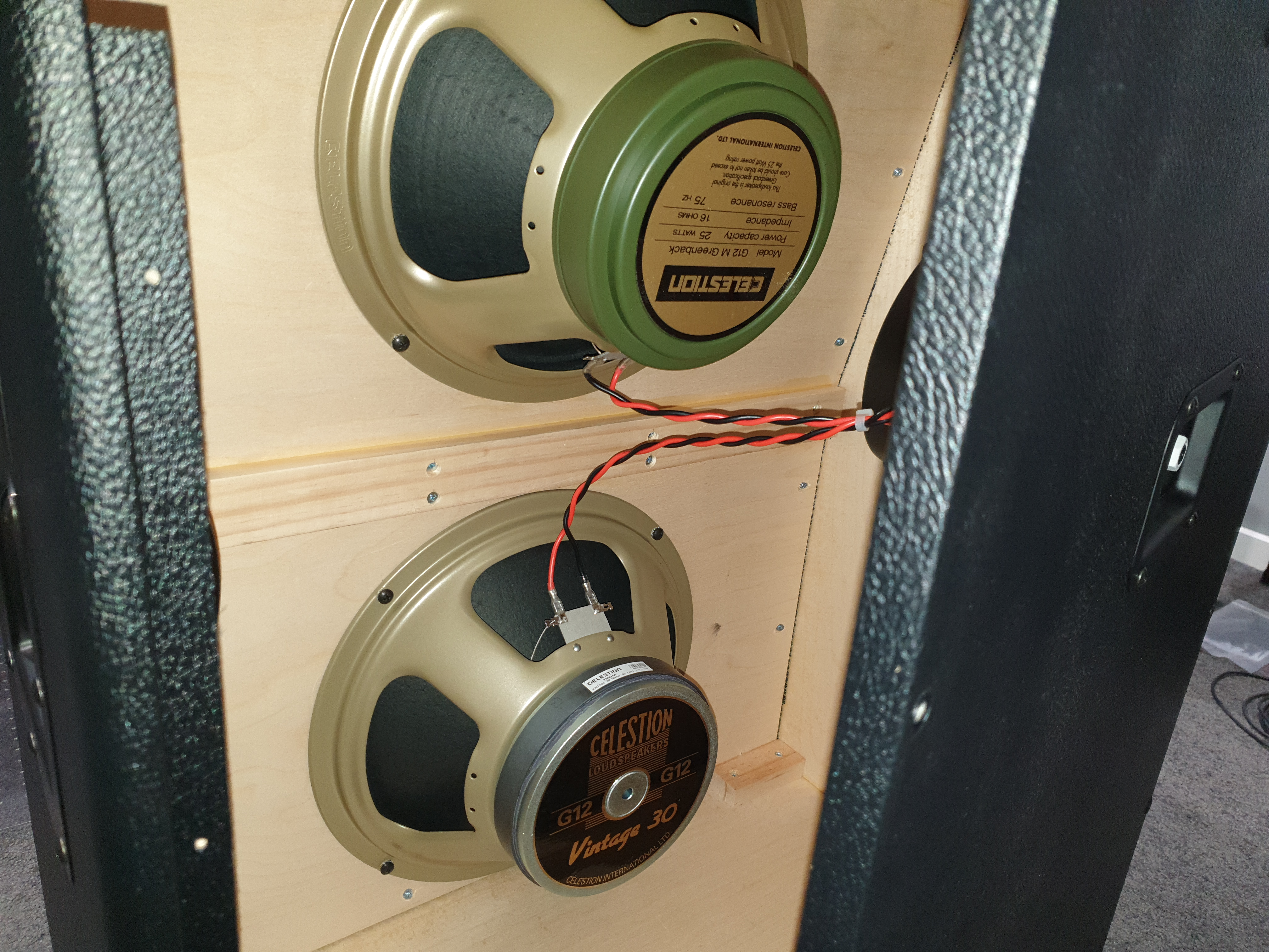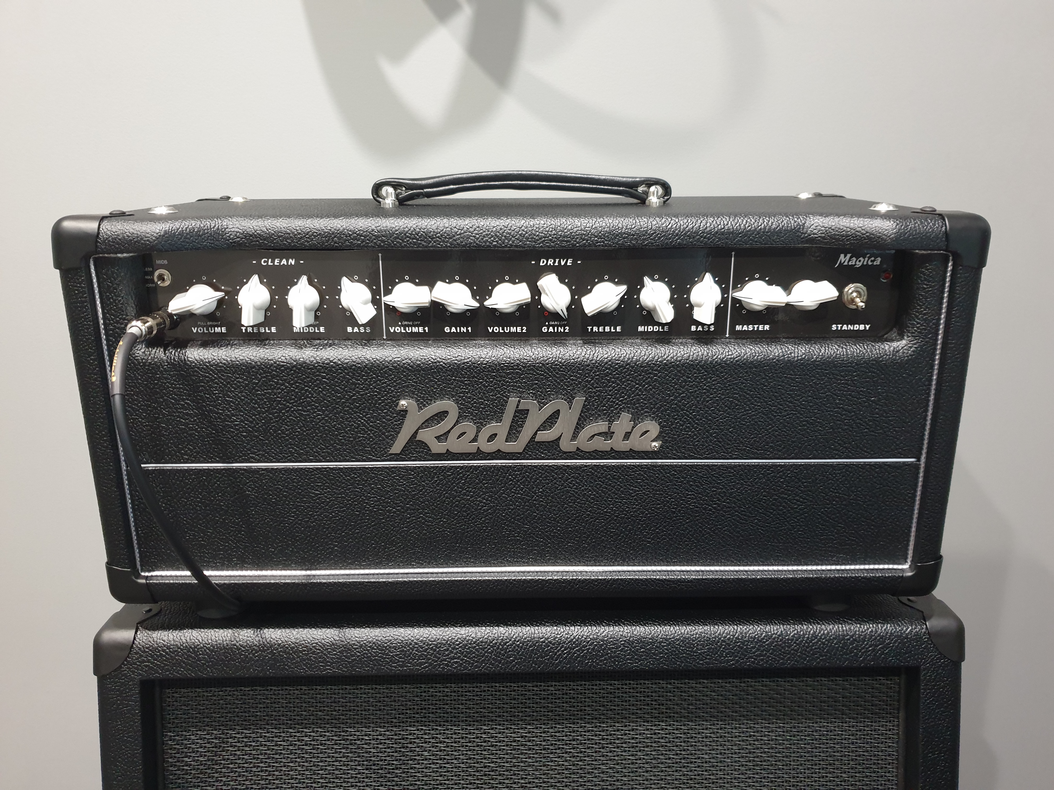 The Magica arrived a few days ago and the cab just got here today. The Achillies 2x12 has a Greenback on top and a Vintage 30 on the bottom. Tonally it's a perfect match. While I was waiting for the new 2x12 I tried the Magica through my 4x12 with the Redback/Creamback H75 x-pattern, and it just didn't sound right. But through the Greenie/V30 mix, it sounds ace! The Magica gets really nasty when boosted. And it rips for single-note soloing. But the Magica's best trick is its clean tones. Sparkly gorgeous cleans.