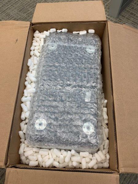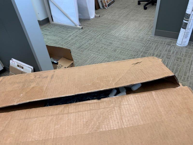 a couple of the aluminum tube shield (bases) got bent. they bubble wrapped the power cord, fs cord, casters and tubes and wedged them all in the cavity under the chassis, bending the shield bases.