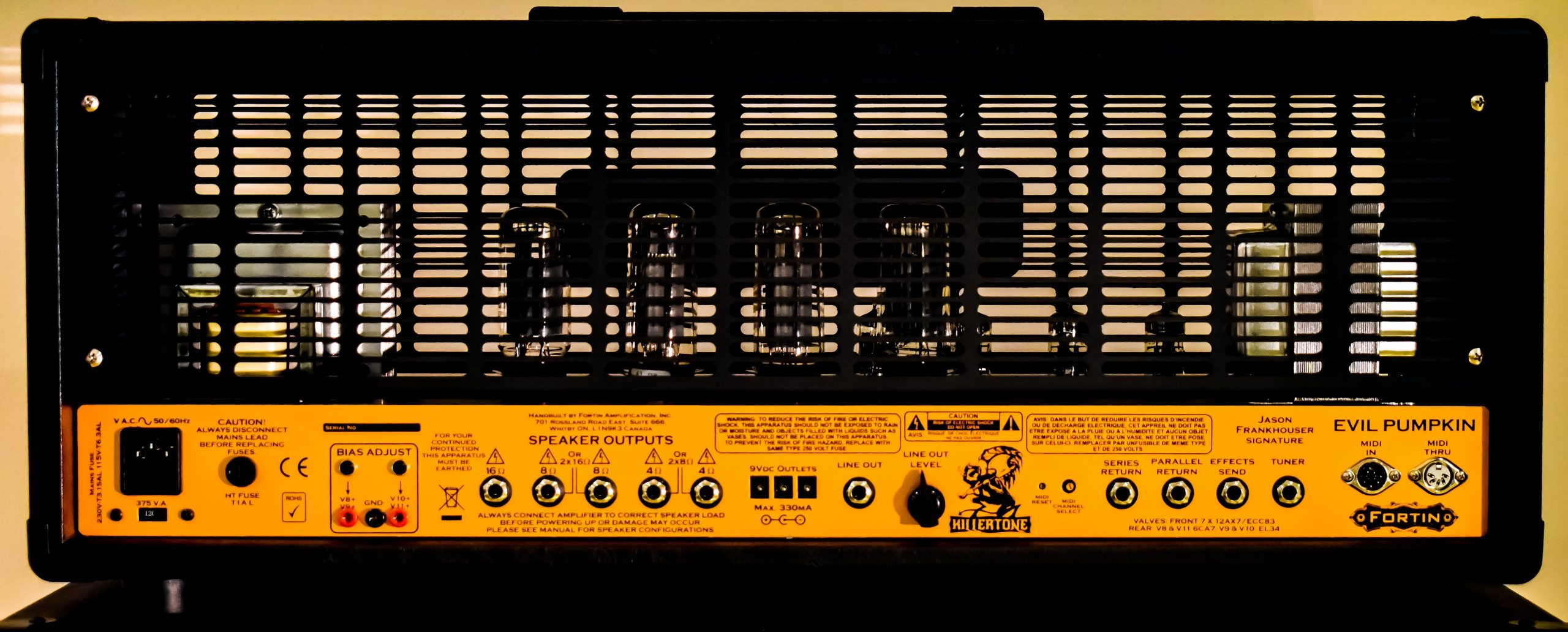 This confirms me in the assumption that this amp was delivered to the UK in individual components (from China?) and was only assembled there to form a complete amp, which according to the casual UK laws then allows the imprint "Handmade in the UK" on the amp's back.