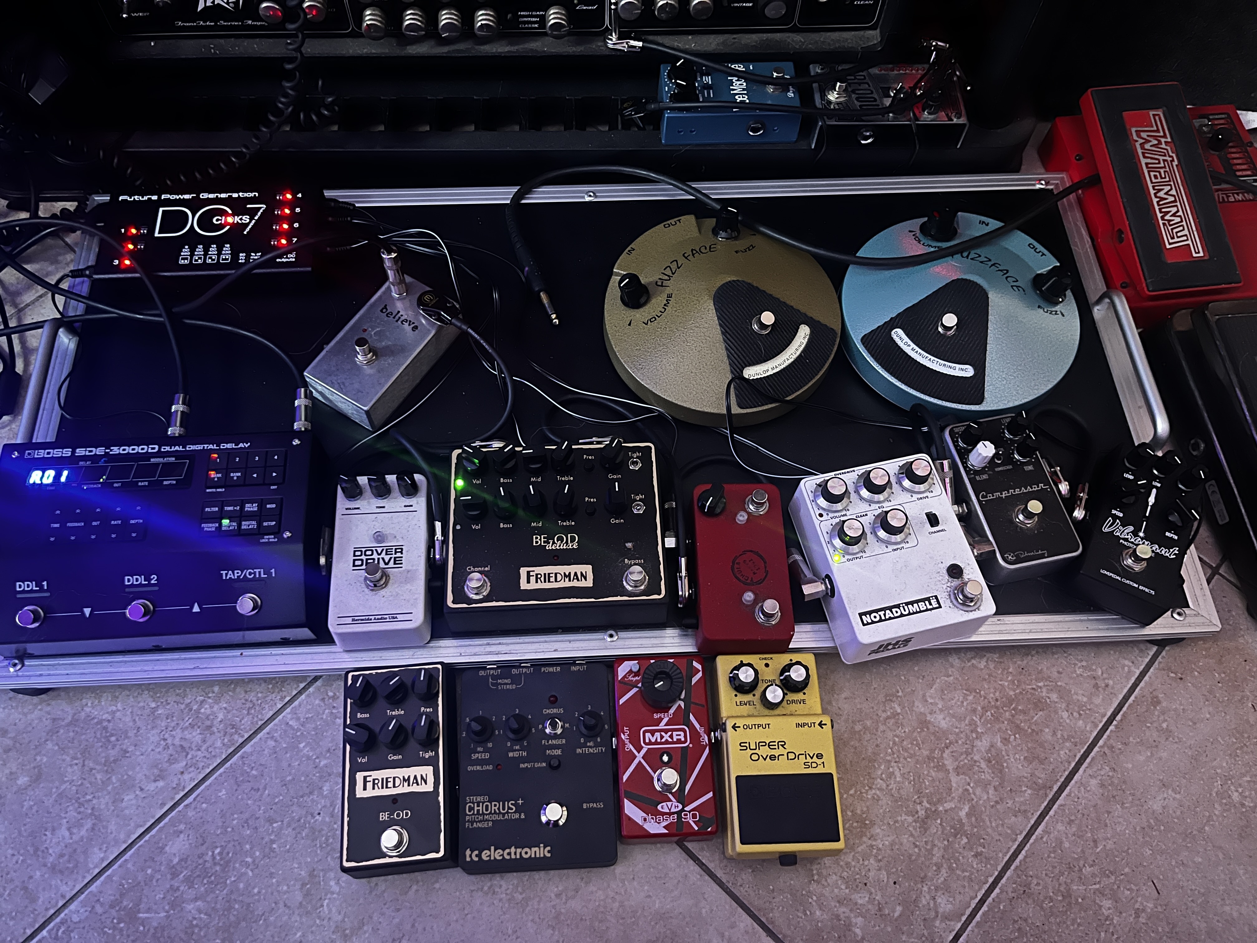 I’ve also been building a pedalboard for all the non-modern high gain tones I’ve been digging on with the Plexi, stuff that gets into Mesa Mark levels of gain I prefer amp distortion, so the point of this board is to go into a clean or edge of breakup amp and basically bring me up to modded Marshall territory. I missed having an actual pedalboard and went a little overboard. I have a Fractal VP4 that’ll replace the SDE-3000. Ordered a Morningstar MC6 Pro and ML5 loop switcher today. Most of what’s on the board is going to stay, but might switch stuff around with the pedals below it.