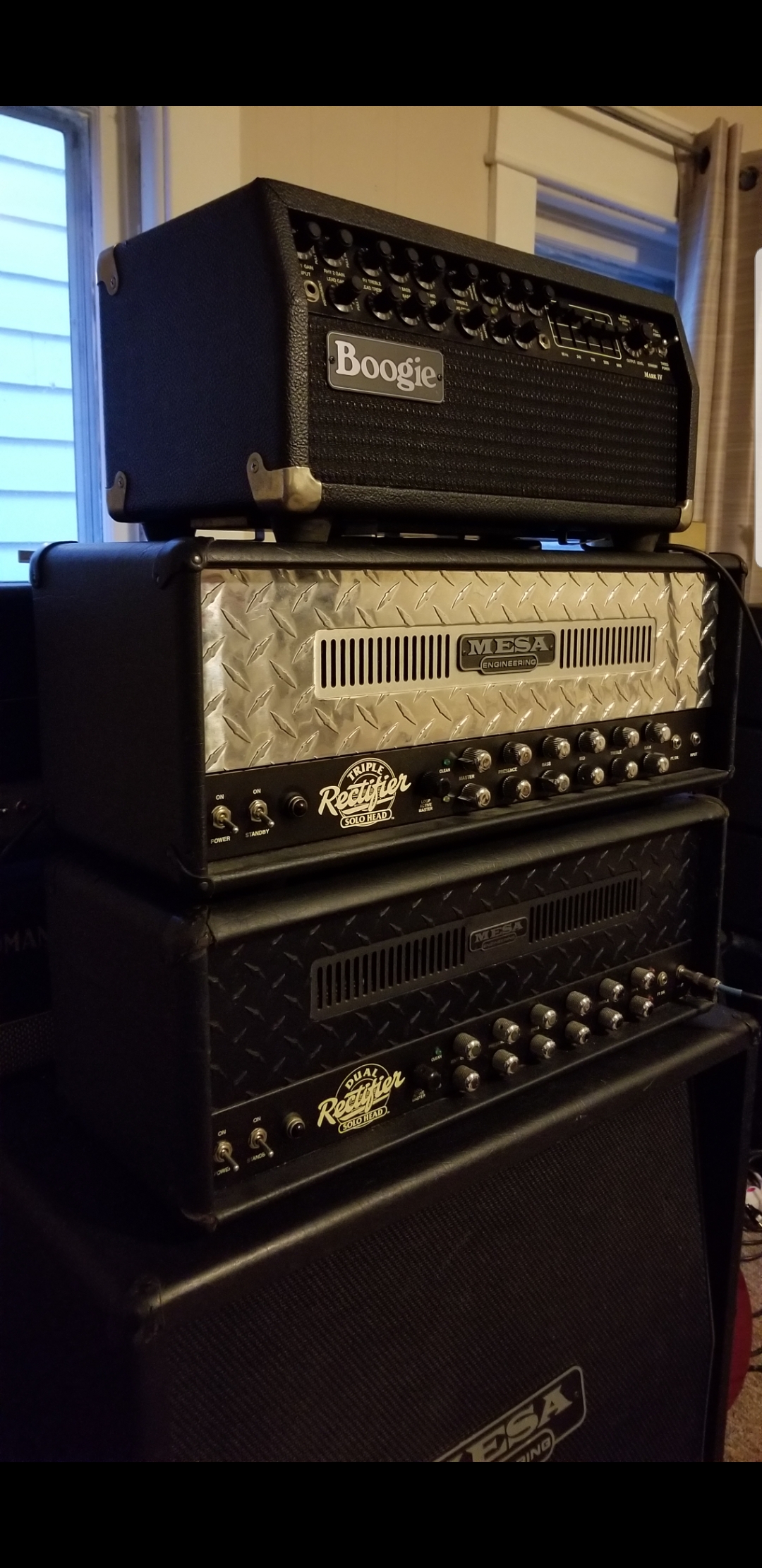 Spent some time with it today. Put it up against my two channel triple rectifier, just to see how they stack up. They're damn close, but for whatever reason, my triple just seems to have a little something that none of my other rectifiers ever had. A little bit more rawness and upper mid presence, and a hair tighter and punchier. The blackface dual sounds a little bigger, but has more of the typical low frequency push you'd expect out of a rectifier, making it just a tad bit looser and less cutting at the same time.