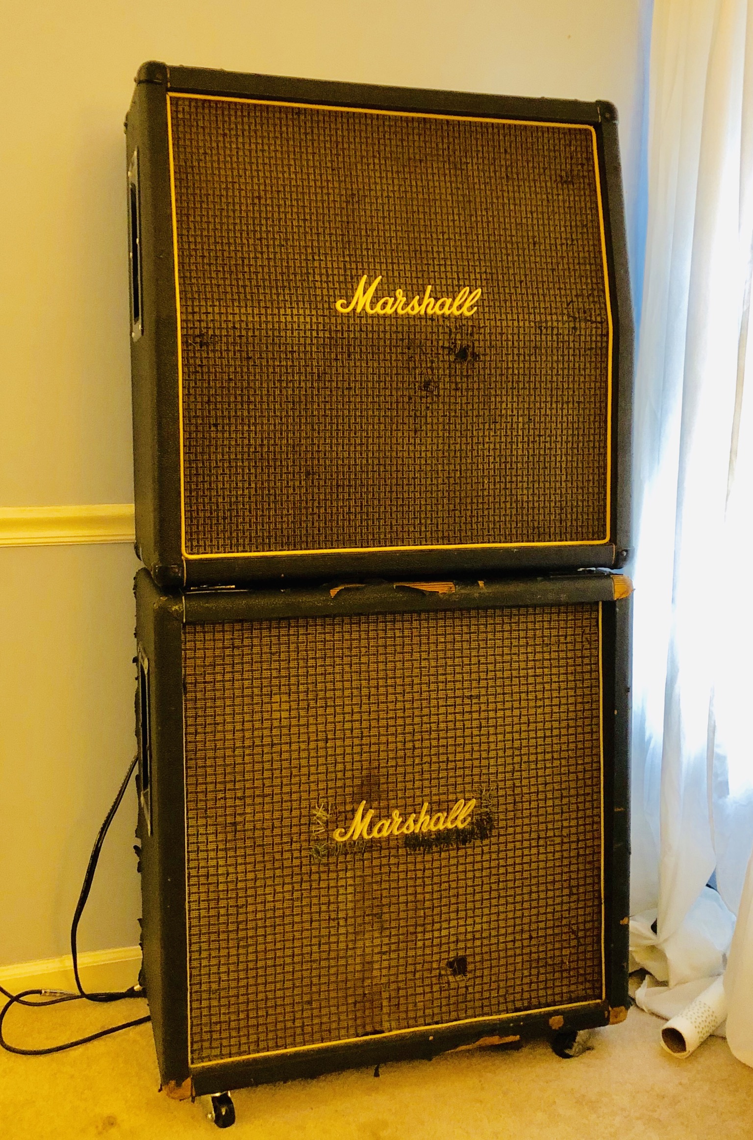 I picked up a 1976 black back 4x12 a few months ago and last weekend managed to score a 1972 1982b with the original green backs