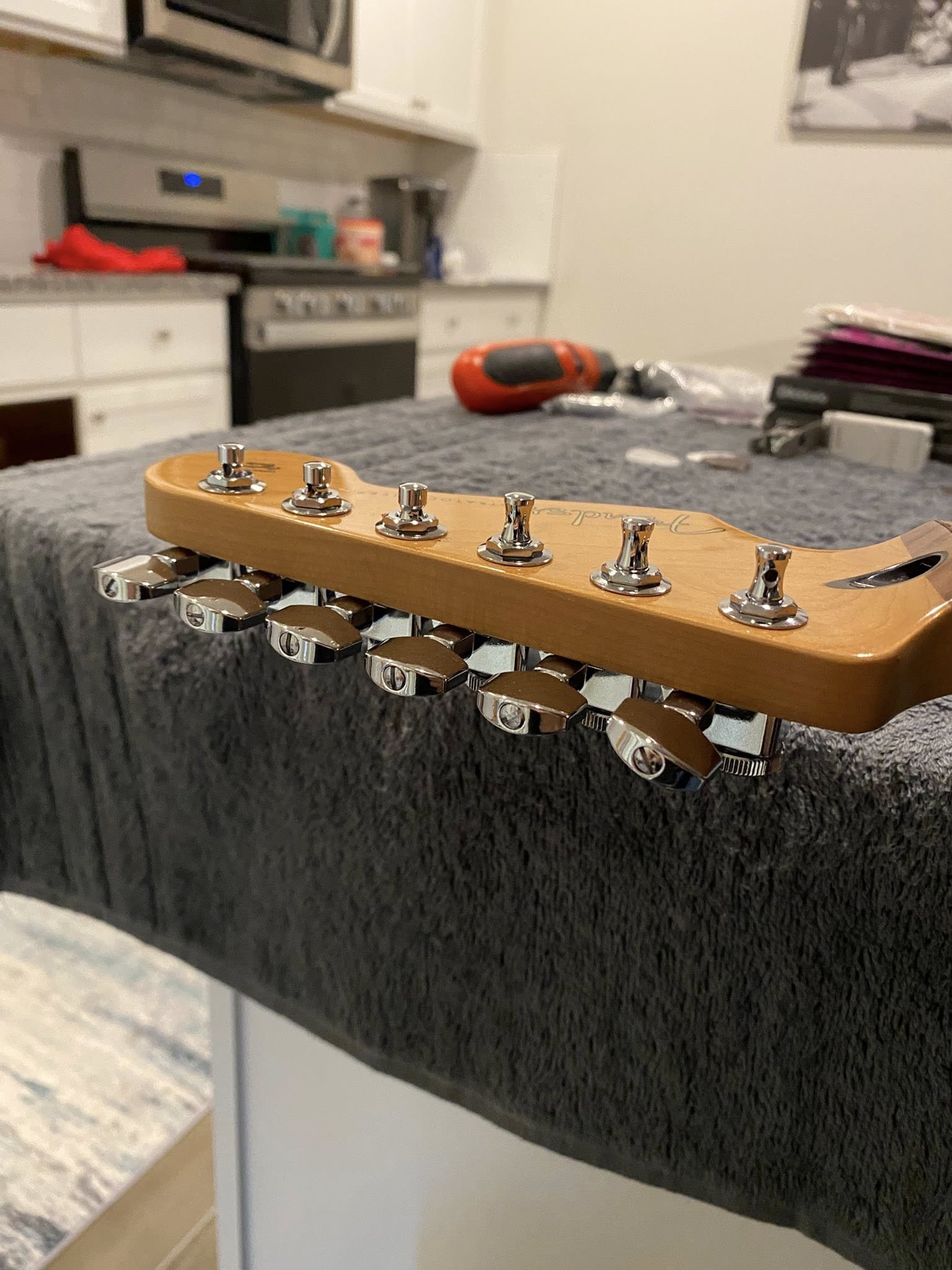 Finally got rid of my MIM Hendrix Strat reverse headstock neck. Frets were wearing and I do not like a reverse headstock.