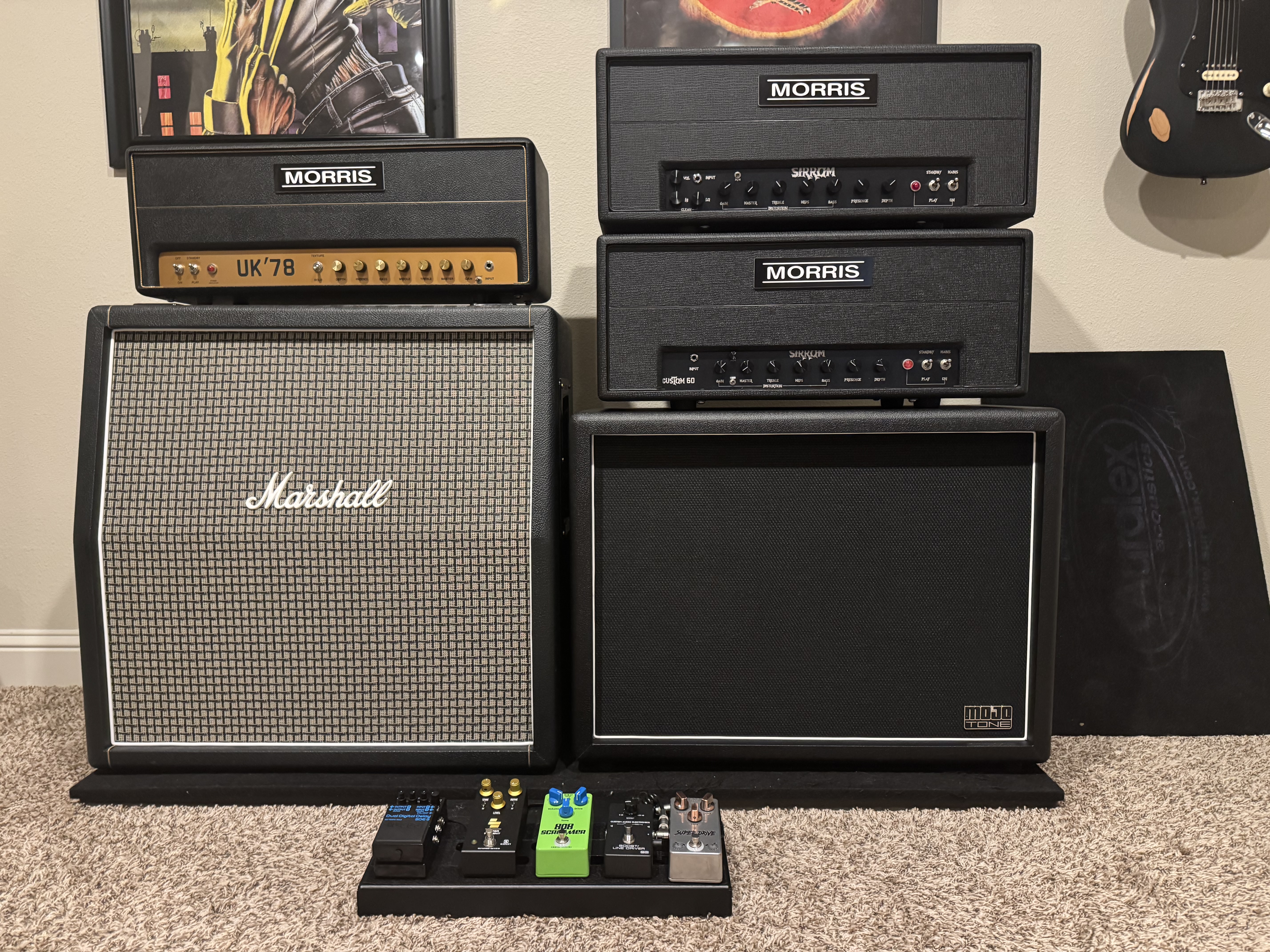 The cab came from Mojo loaded with a Vintage 30 and their BV H30 clone. The only problem I have is their BV-H30. The speaker sounds great when isolated, but it’s too quiet when mixed with the Celestion. I would probably love the BV-H30 in pairs or maybe with one of their V30 or Greenback clones……but I wanted to keep the Celestion Vi30 in the mix. I’m going to try and hunt down the now discontinued Heritage 75hz G12H30.