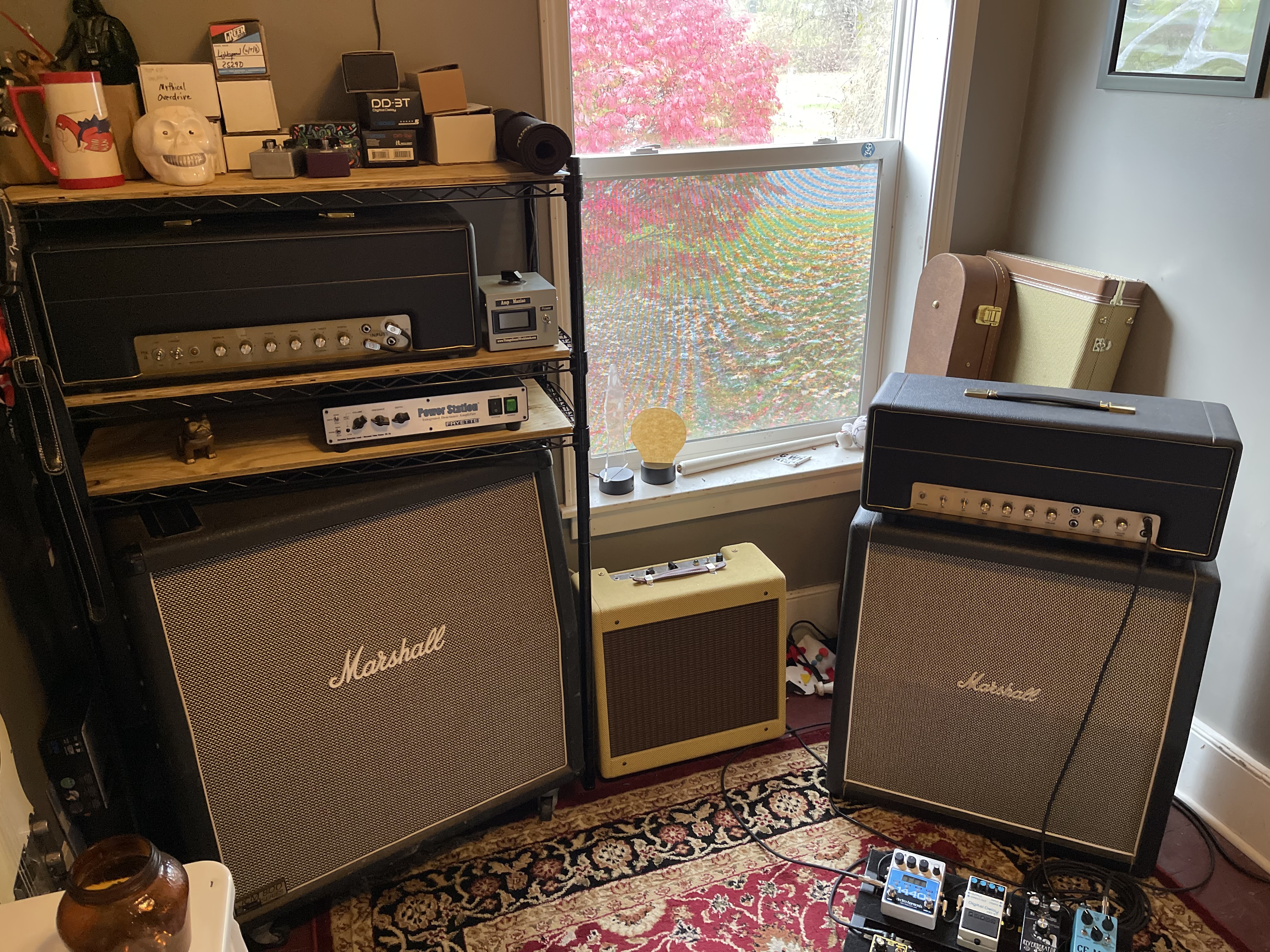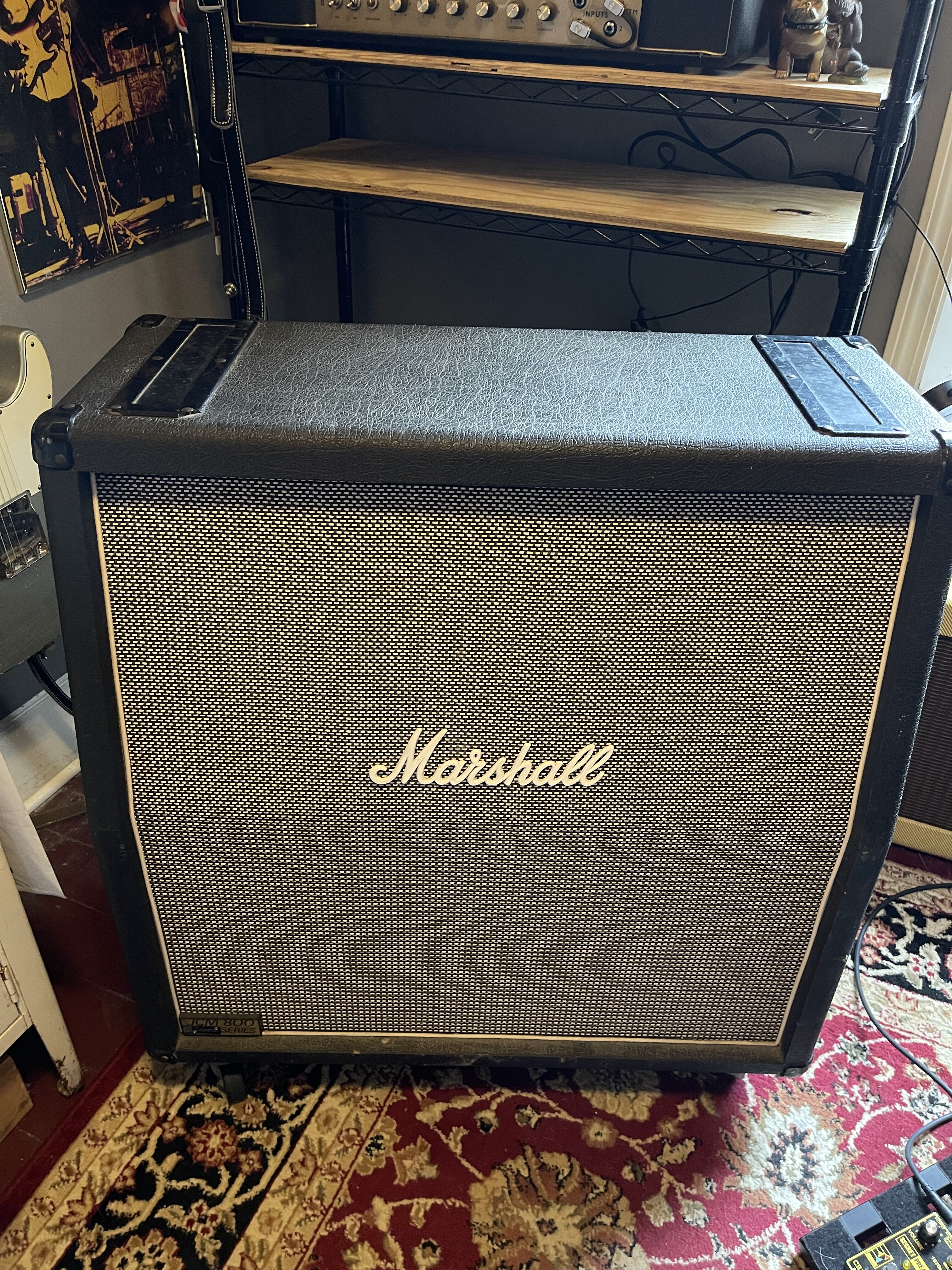 Pretty beat up with a hand painted wizard standing on a mountain of skulls. Pretty fucking metal!