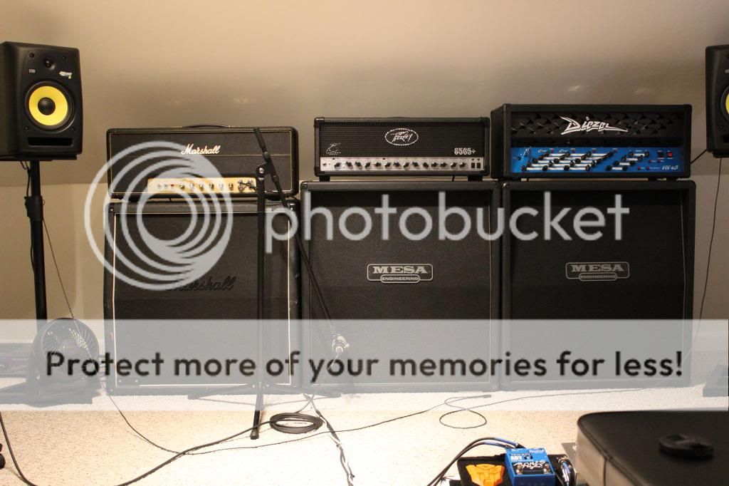 EDIT: thumbed through that Dunlop rig rundown vid. Slant with a black grill cloth. Hard to say, but it looks like a model plate was (or at one time was) on the lower left corner of the grill. That would make it too modern to have the blackback G12M speakers. Could have chaned the speakers. Could have painted the small check cloth black. Could have a UK domestic market cab. But I think more likely, it's just a modern 1960 "Vintage" cab with the Marshall-logo V30s.