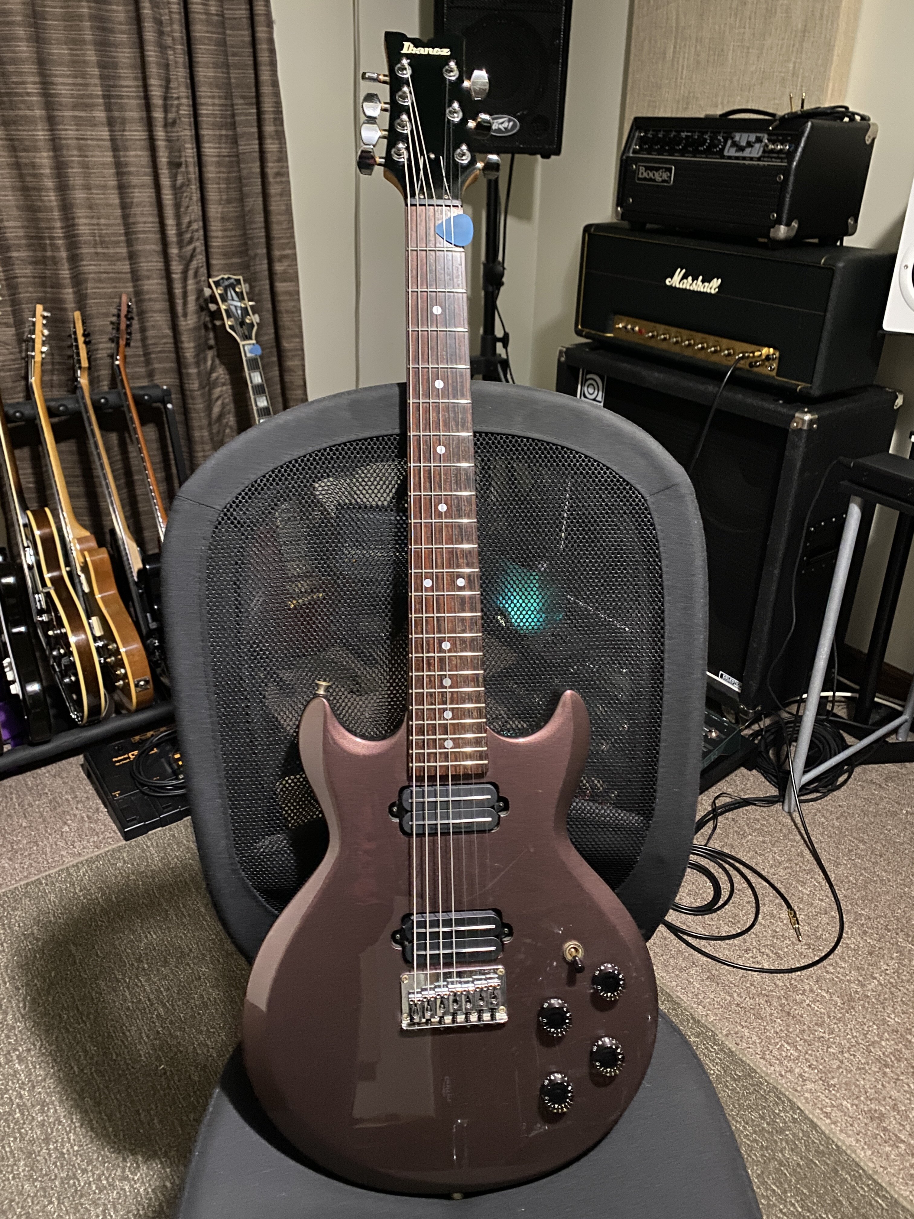 I ended up with this Fujigen-built Ibanez AX7521 from ‘99. I guess most 7-string guys don’t like these because of the Gibson-style scale length and control layout but my main guitar is an SG so it’s right up my alley. My last 7 was an Indonesian-built Ibanez Iron Label RGIR27E, it always felt cheap to me and never sounded that great compared to my other guitars. The AX7521 is on a totally different level quality-wise. The neck feels great and it came upgraded with a Seymour Duncan Black Winter and Jazz Rails so it sounds killer.
