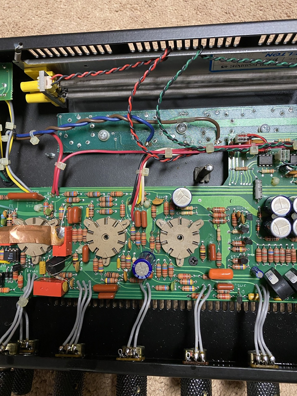 I pulled all of the tubes, sprayed Deoxit on the pins, worked the tubes in and out of the sockets six or seven times each. Then put all the tubes back in. Then I took an instrument cable and sprayed Deoxit on the end, and worked it in an out of all of the Quarter inch jacks on the amplifier.