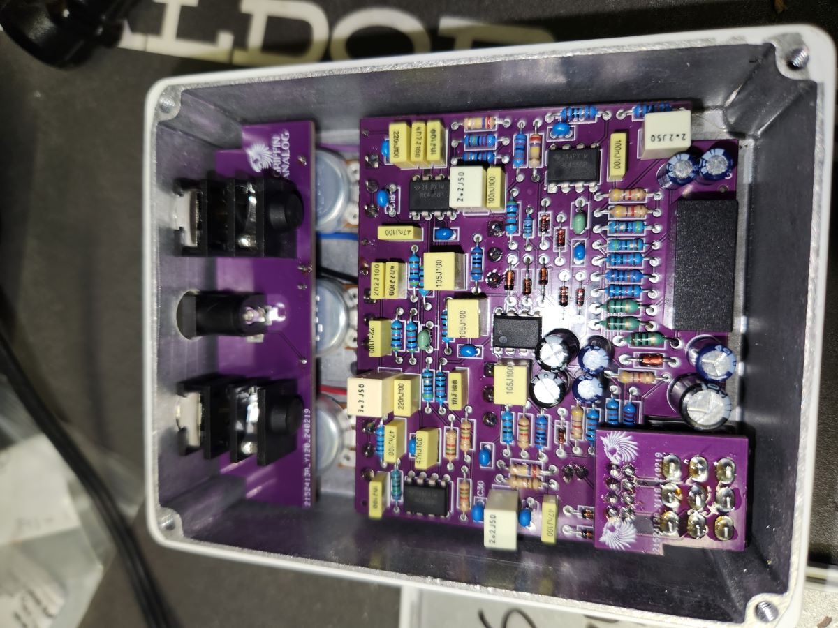 and just to give reference of a small distortion circuit vs a big one .... that Disto + has like 16 total PCB parts .. this is the inside of my Erebos Distortion Pedal