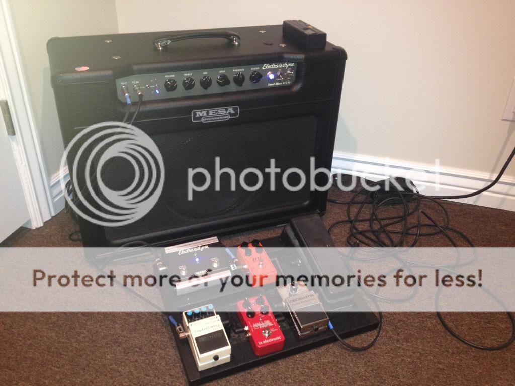 As a lot of you know I added a Mesa Electra Dyne to my gear recently. I am loving it and it is great to have two separate rigs to use for the band, rehearsals, etc. Anyways, I put together a small pedalboard to accompany the amp. Sounds fantastic! Now I use this rig for certain shows and the Kemper/Atomic CLR wedge for others (depending on venues).