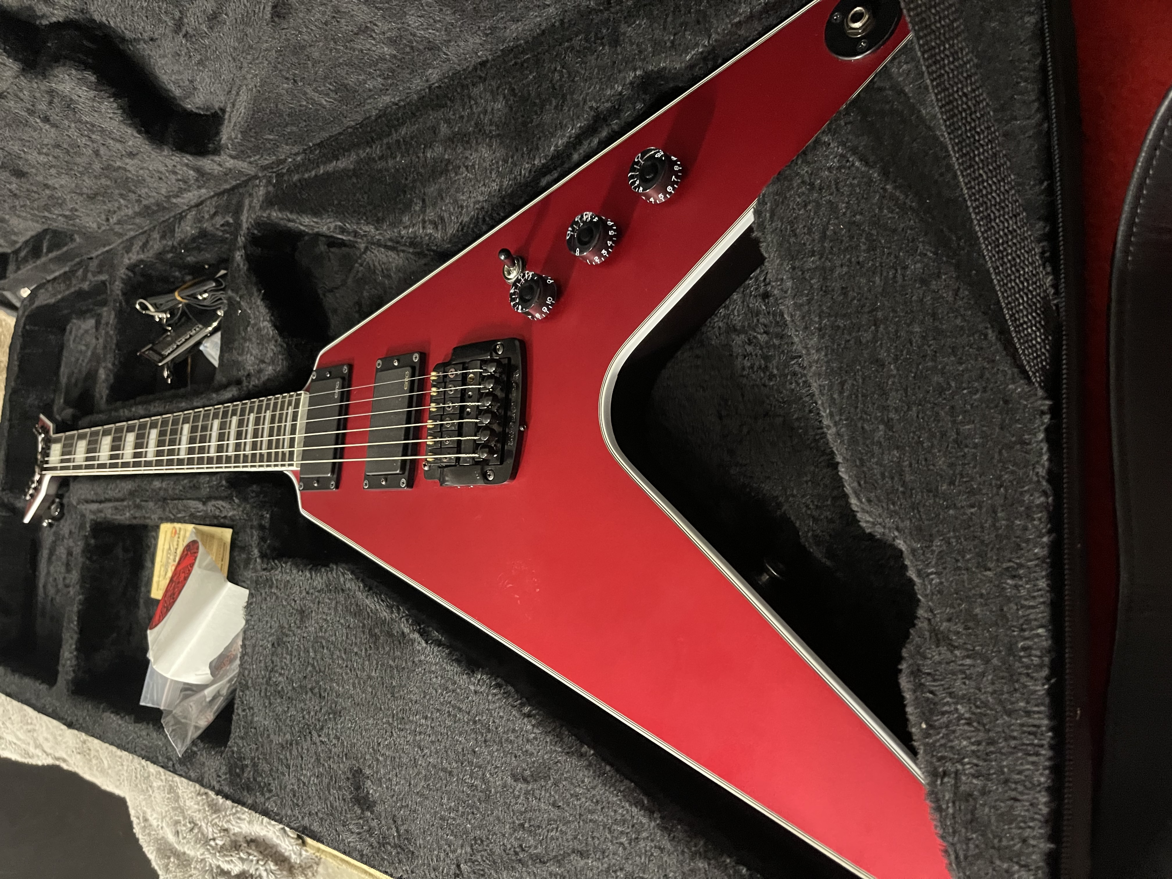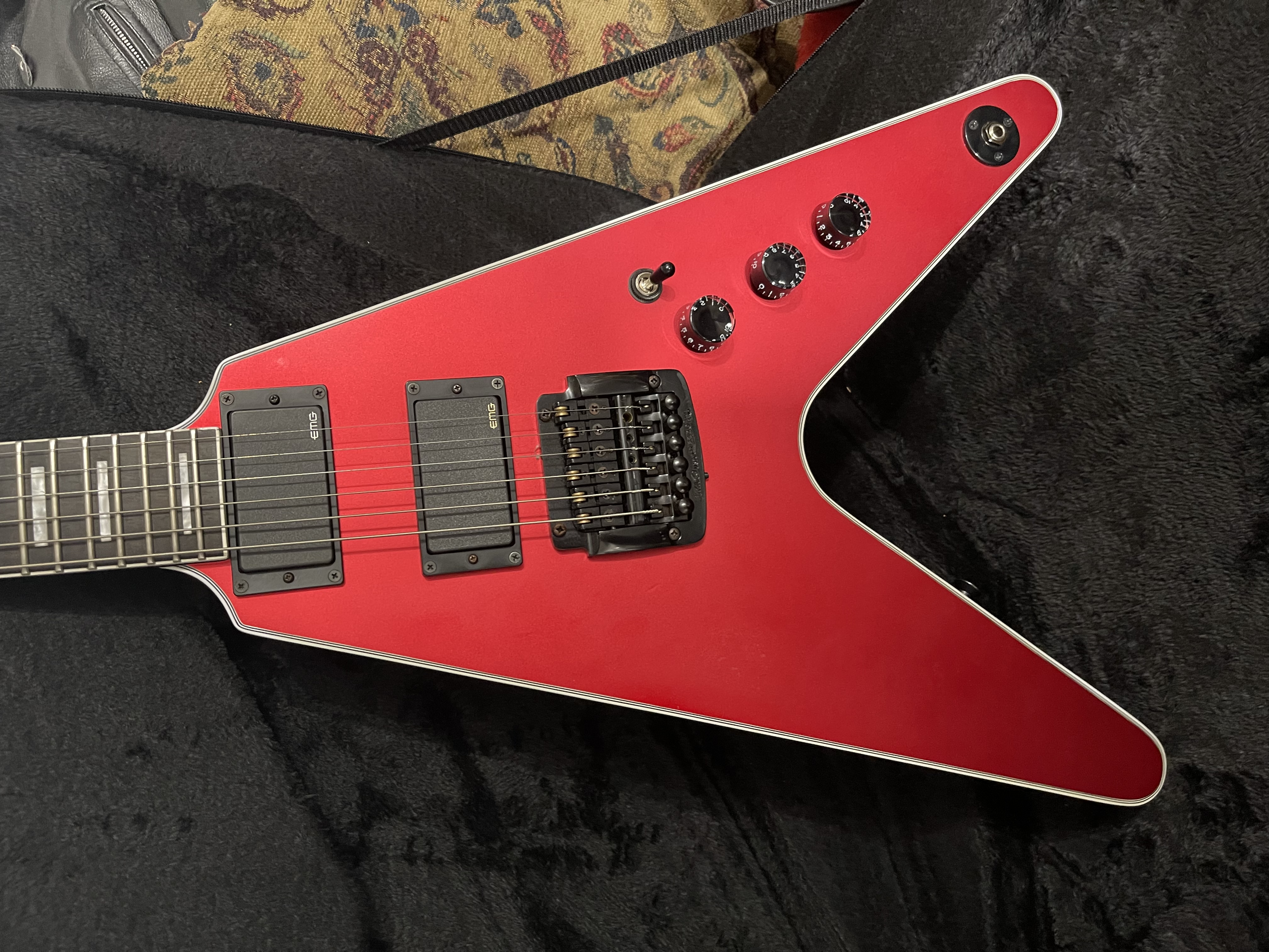 New guitar that was gifted to me from a friend. He has an endorsement and received this one as an emergency replacement while on tour. He’s a Floyd guy, I’m a Kahler guy. Actually a killer guitar.