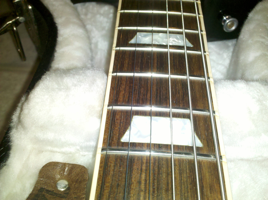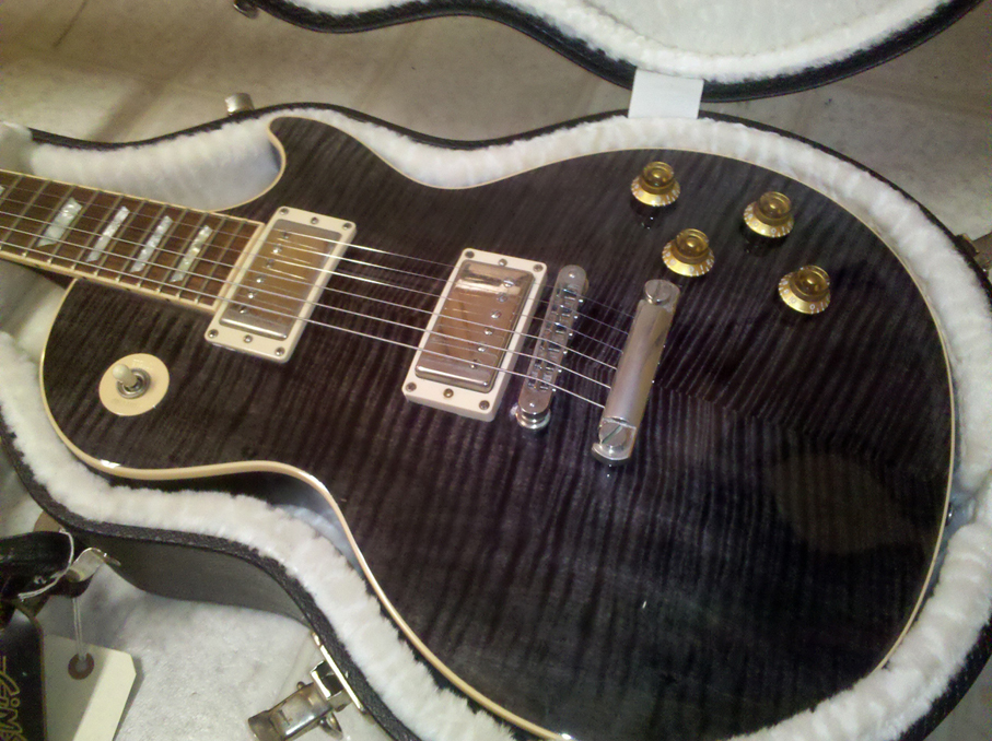 Yea, I know! Lame as hell! Regardless, I finished paying her off finally. I had almost forgotten why I had agreed to purchase this guitar.... WHAM! She was my 1 in 100 LP. Plays like butter, sings acoustically, SCREAMS plugged up even though I'm definitely NOT a Burstbucker fan. She's an easy 9lbs, 60's neck and has a BEAUT of a top on her.